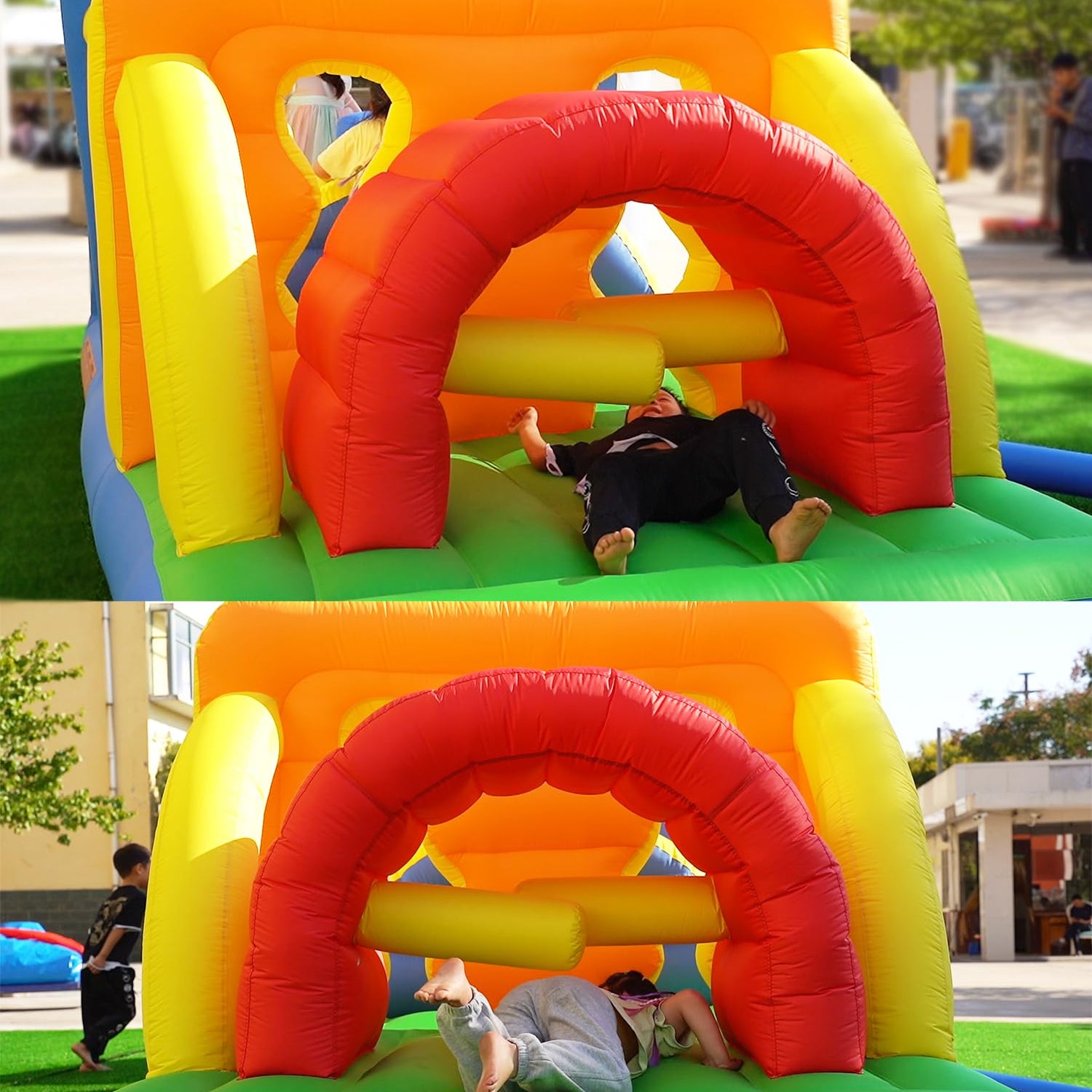 - Extended Length for More Fun: At an impressive 20.5 feet long, this inflatable obstacle course offers ample space for kids to run, jump, and crawl through a series of challenges. Size: 20.5' (L) x 6.3' (W) x 6.6' (H)