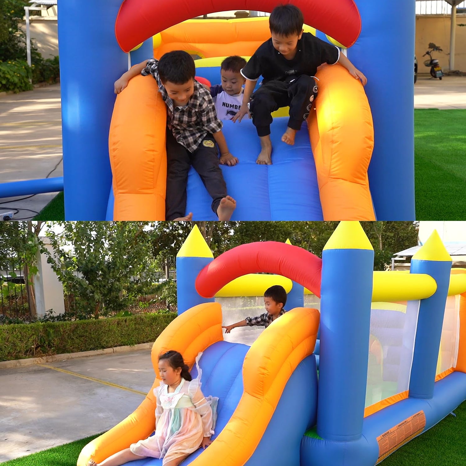 - Easy Setup and Storage: Equipped with a powerful blower, the bounce house can be quickly inflated and ready for action in no time. Also it can be easily stored away when not in use.