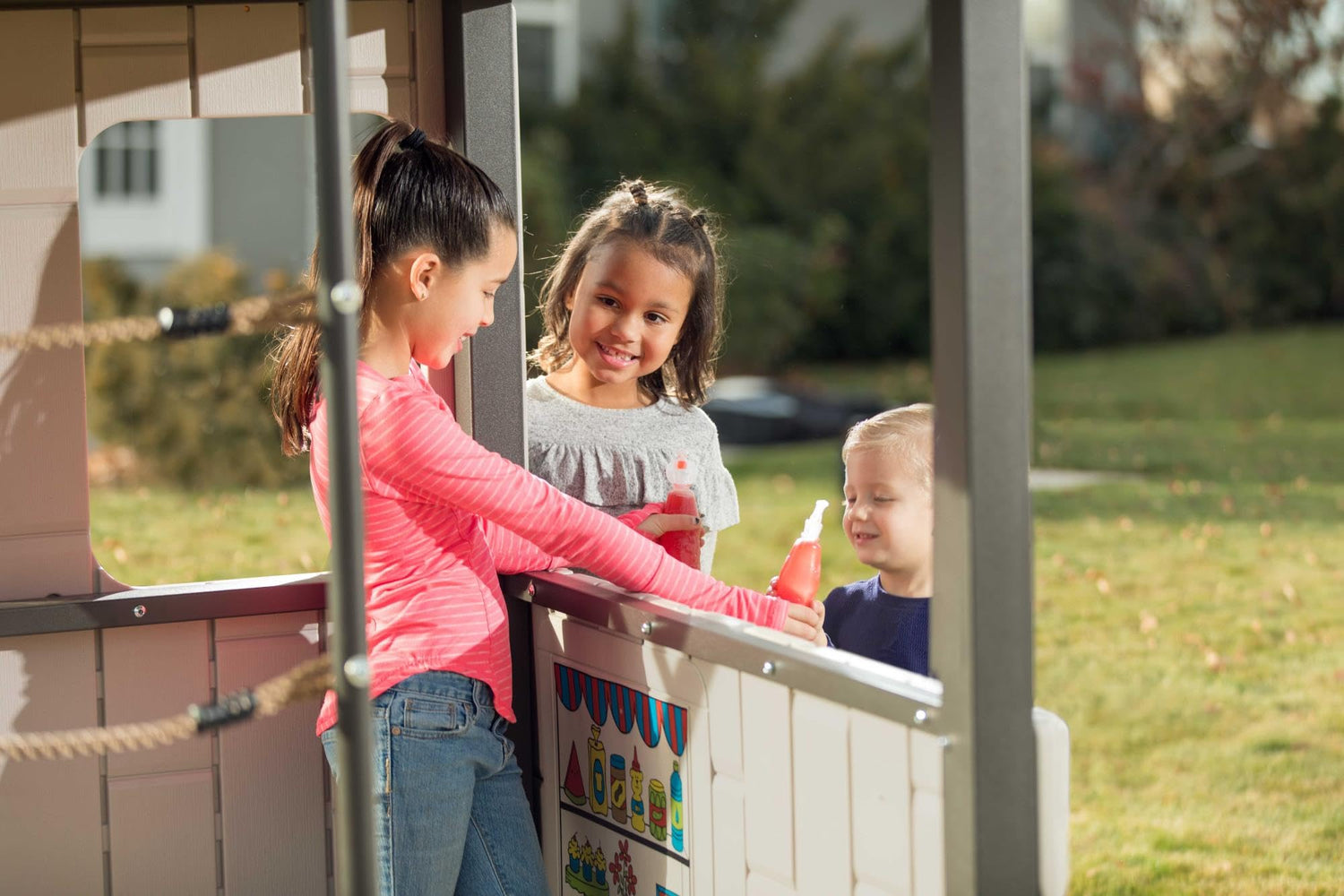 - Covered Clubhouse: With a hardtop roof and a great lookout, kids won't want to leave their very own clubhouse.