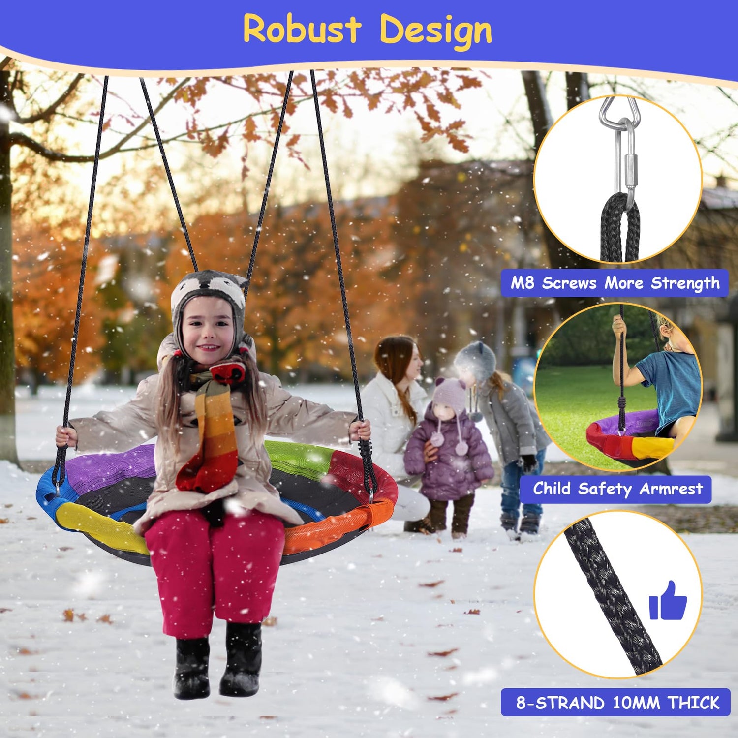 - IDEAL GIFT FOR KIDS - The saucer swing set that meets or exceeds CPSC standards is the perfect gift for your kids and friends. The outdoor swing set makes your child feel more interesting, and the bright colors make your child's games more interesting.