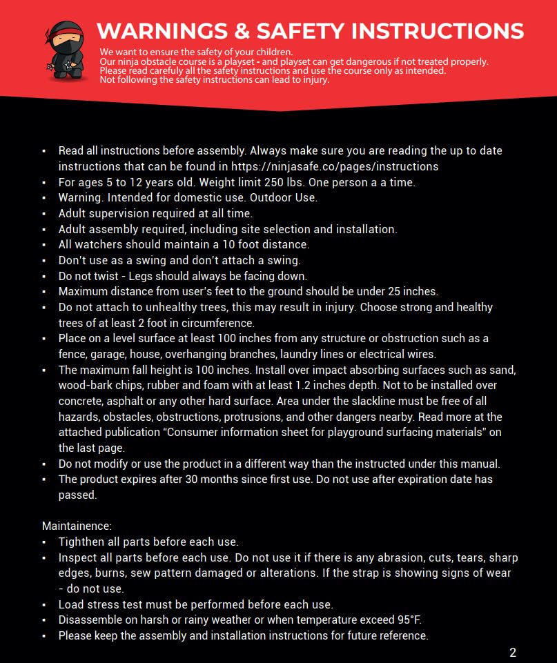 - STRESS-FREE SETUP: Our ninja course can be quickly installed! You only need 2 trees with a distance between 20 to 45' apart and our easy instruction manual will guide you