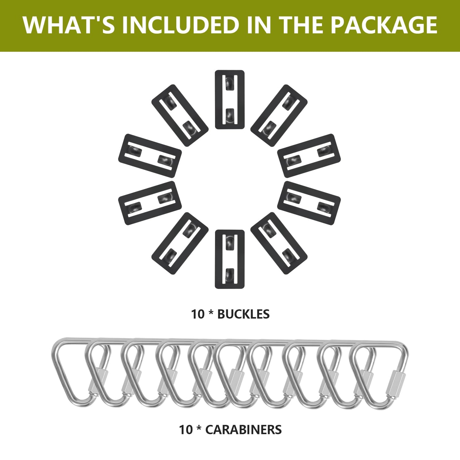 • STRONG CARABINER: Made of high carbon steel, capable of withstanding up to 1000 lbs of pull