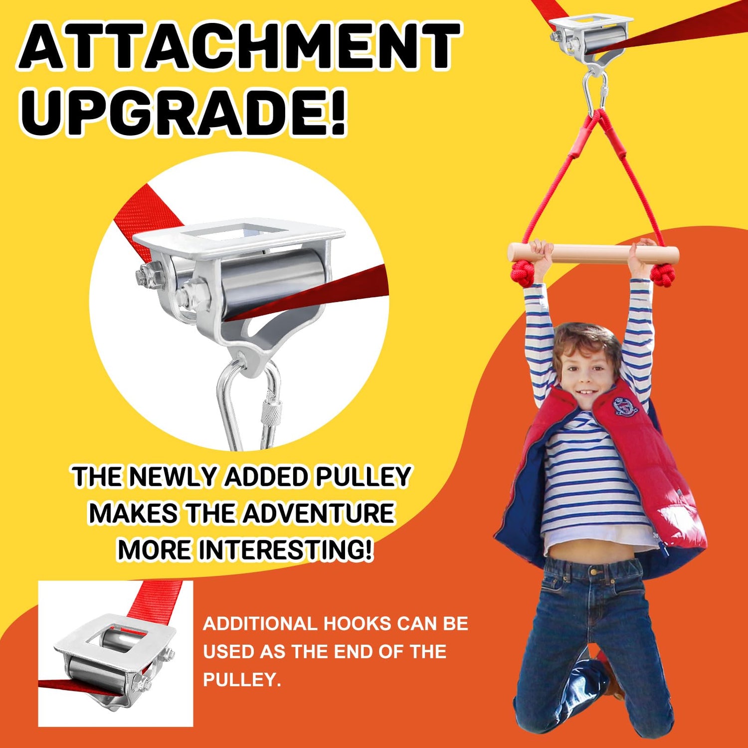 - 【Convenient and Portable】Our obstacle course and zip lines for kids can be quickly and safely set up almost anywhere. All you need is two mature trees, pillars, beams or bars which are 15-52ft apart and can withstand a minimum force of 2200 pounds. You can install it on your backyard, playground, outdoor, home gym, basement, pool, fitness class, camping trip, beach park, etc.