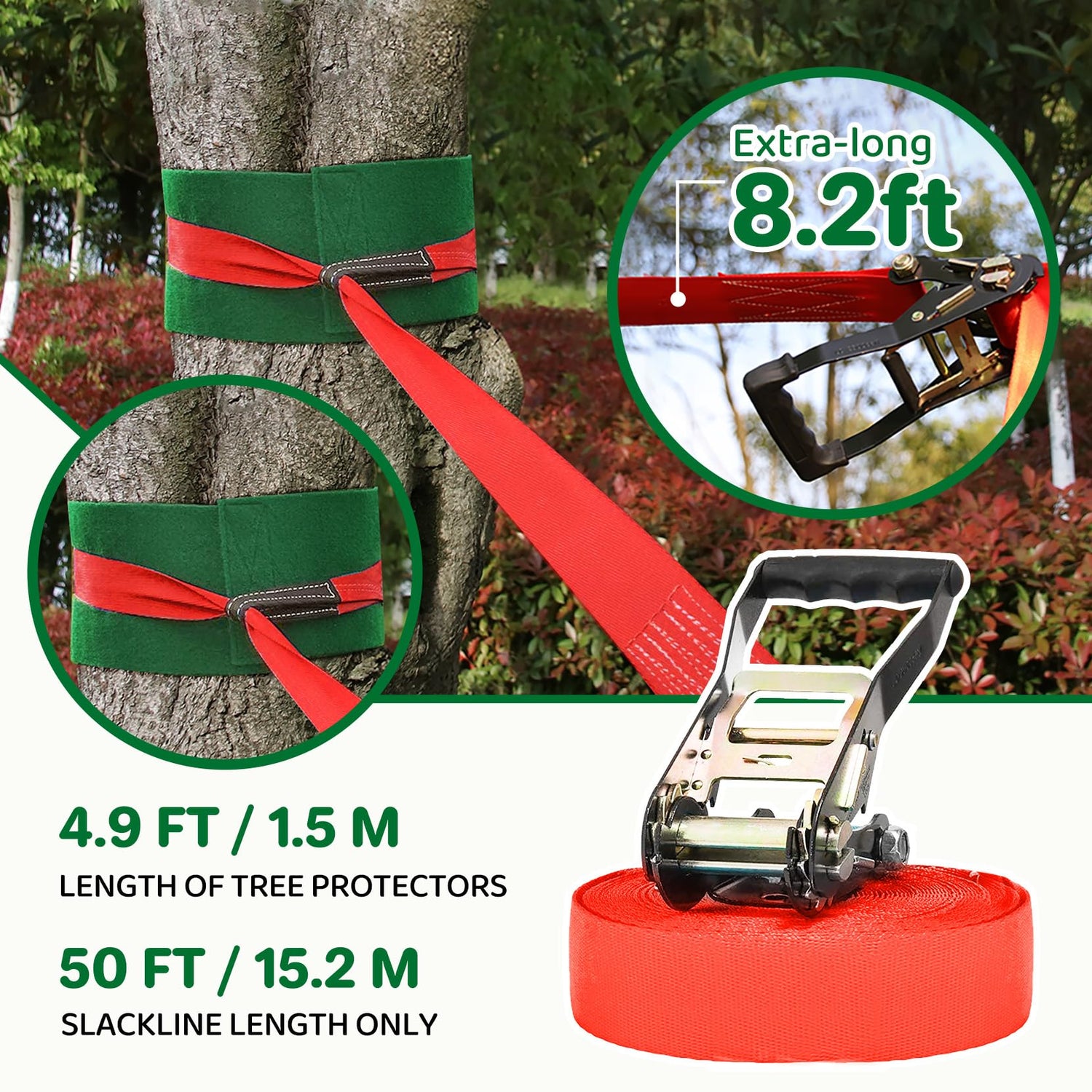 Ninja Warrior Obstacle Course for Kids Backyard - 2×50ft Slackline Kit with 10 Most Complete Accessories for Boys & Girls, Swing, Rope Ladder, Gymnastic Ring, Climbing Net, Arm Trainer and Monkey Fist