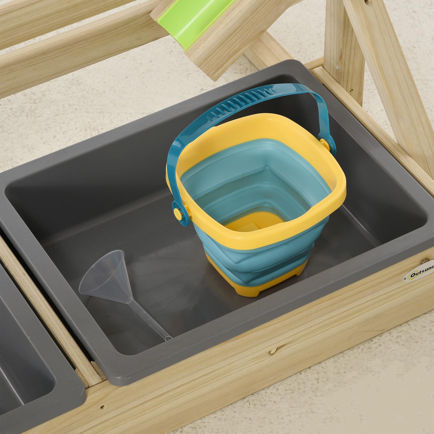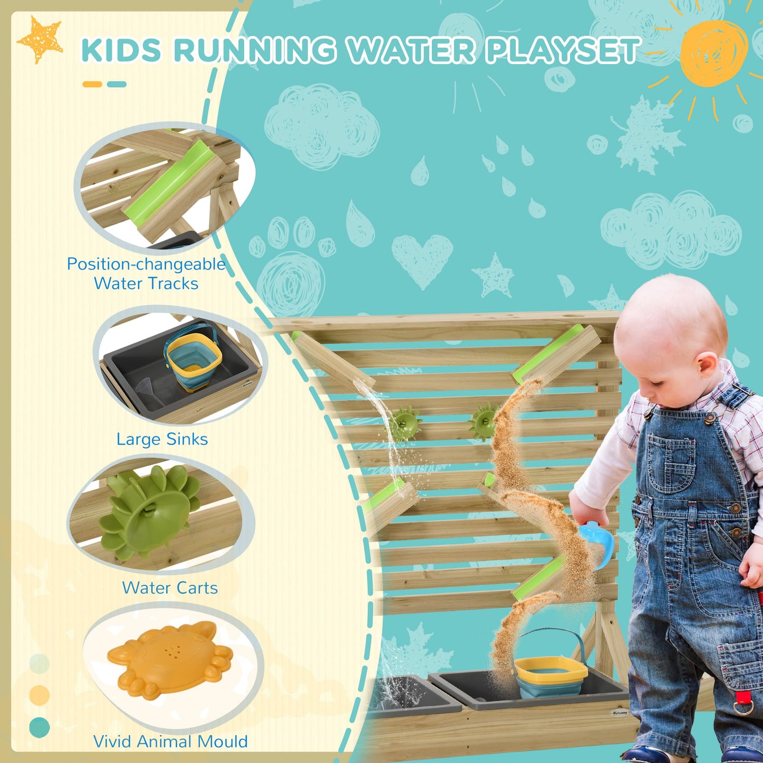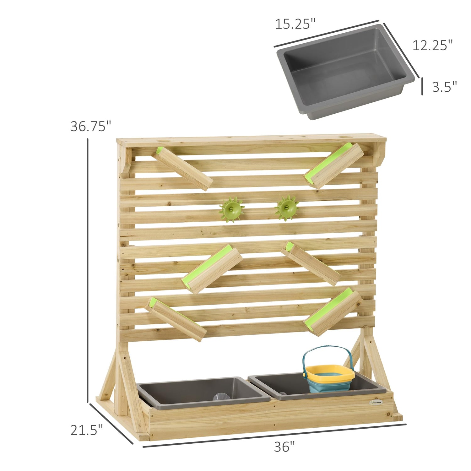 Outsunny 18Pcs Sand and Water Playset for Kids, Wooden Sandbox with Rearrangeable Falling Network Maze, Baby Sensory Toy Outdoor Toys for Summer Activity, Aged 3-7 Years