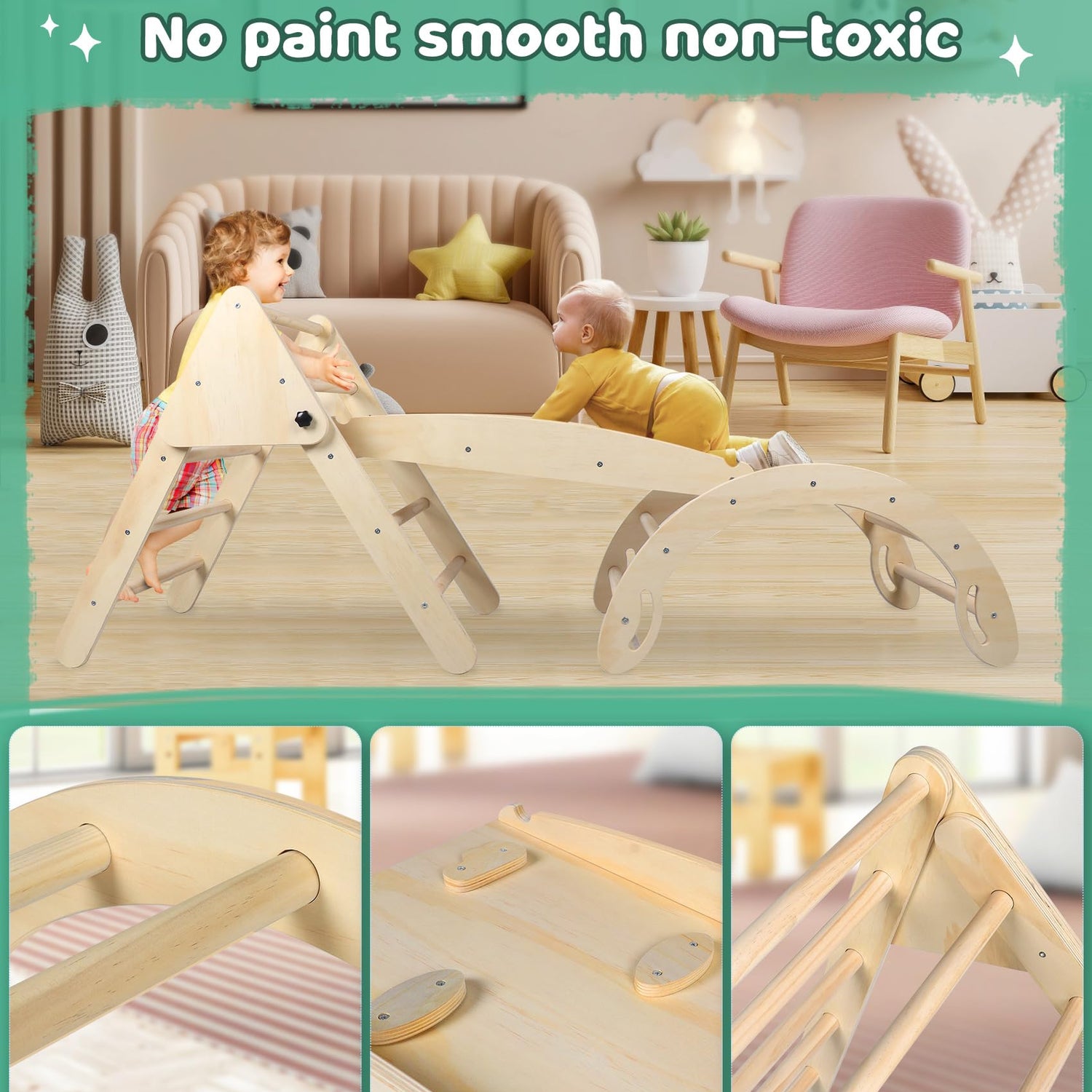 - 【NATURAL &SAFE】Kids climbing toys is made with natural woodnatural wood. No odor, no harmful chemistry components. The corners and edges are polished to ensure a smooth and burr-free surface, effectively preventing children from getting injured while playing and accompany your little angel through the happy childhood!