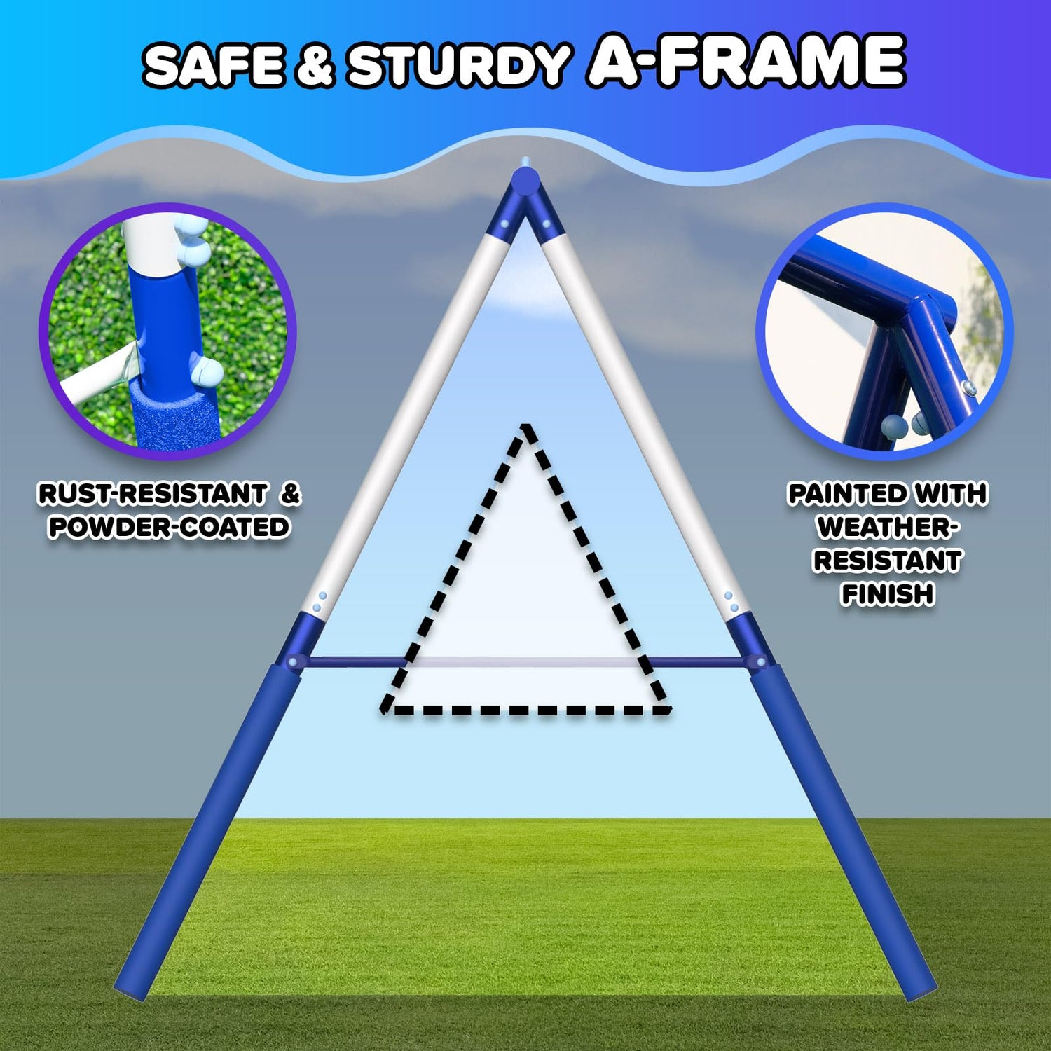 - [SUPERIOR DURABILITY] Swing set is crafted from 2" heavy-duty weather-resistant steel tubes & hardware, with a powder-coated paint finish