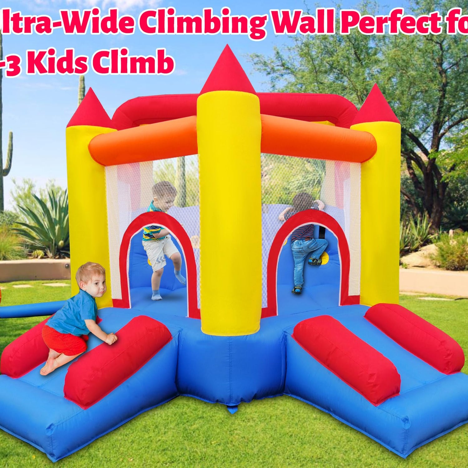 - Extra Wide Climbing Wall & Dual Slides: This big water bounce house with ultra wide climbing wall Perfect for 2 kids climb at the same time. Extra Large Racing Slides perfect for 2-3 kids race slide at the same time.