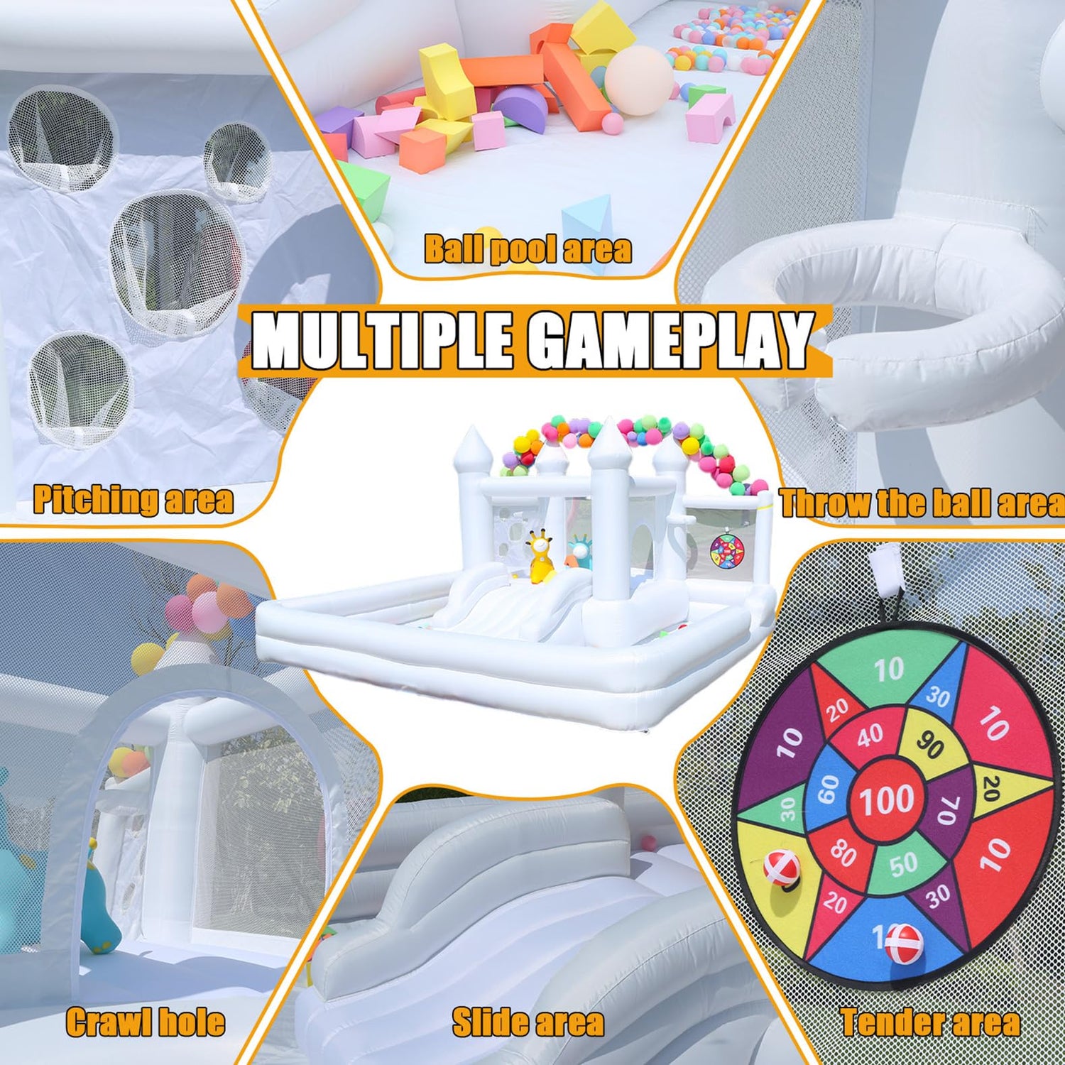 White Bounce House with Blower,Ball Pool,Kids Bounce House,Family Backyard Bouncy Castle,Suitable for Yard,Events,Parties,Weddings,Children's Gifts(13ftL×12ftW×7ftH)