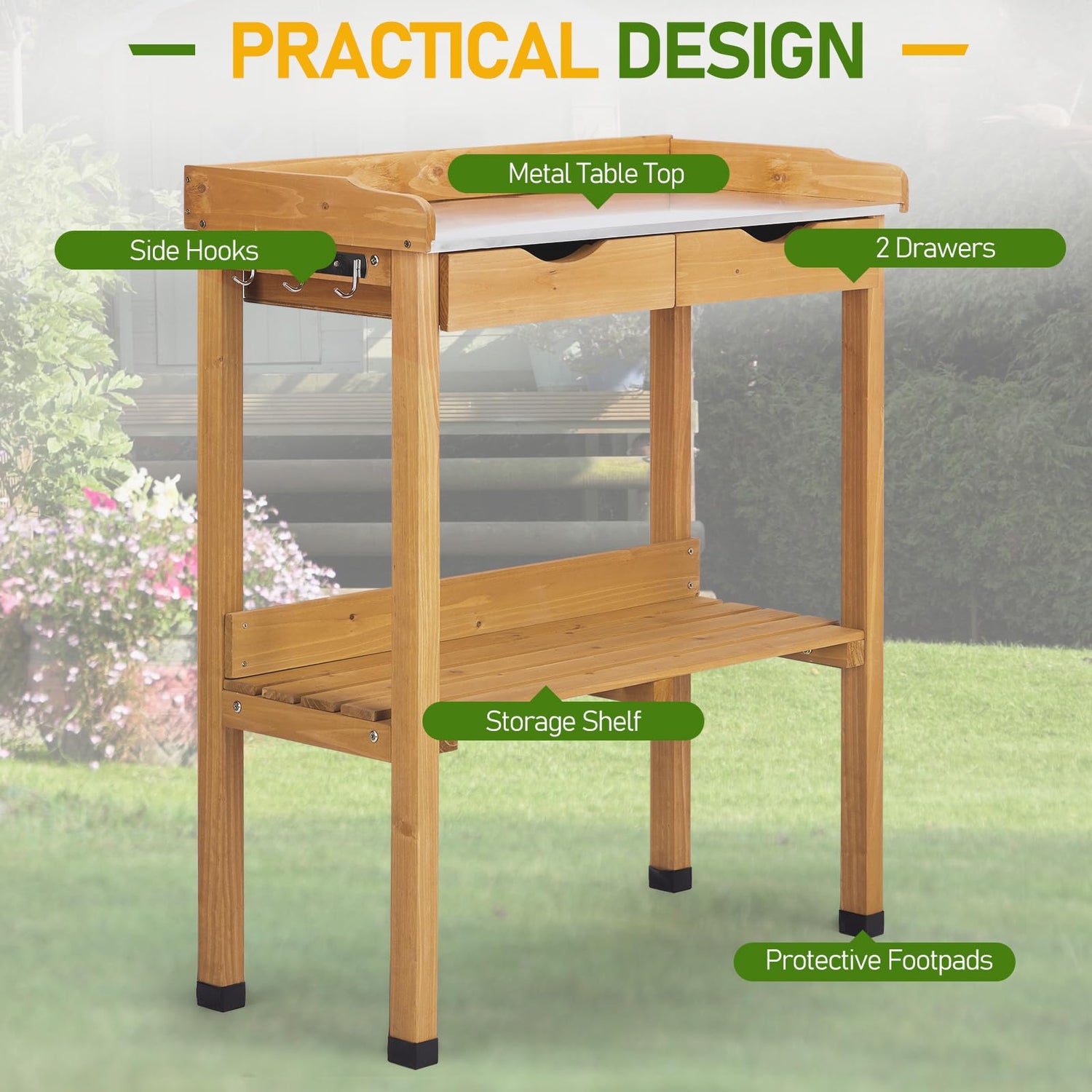 • 【Solid Fir Wood Construction】Crafted from high-quality fir wood, this potting bench is sturdy, stable, and naturally resistant to outdoor elements, offering long-lasting performance
