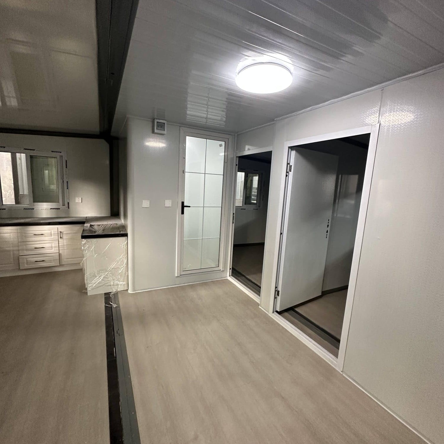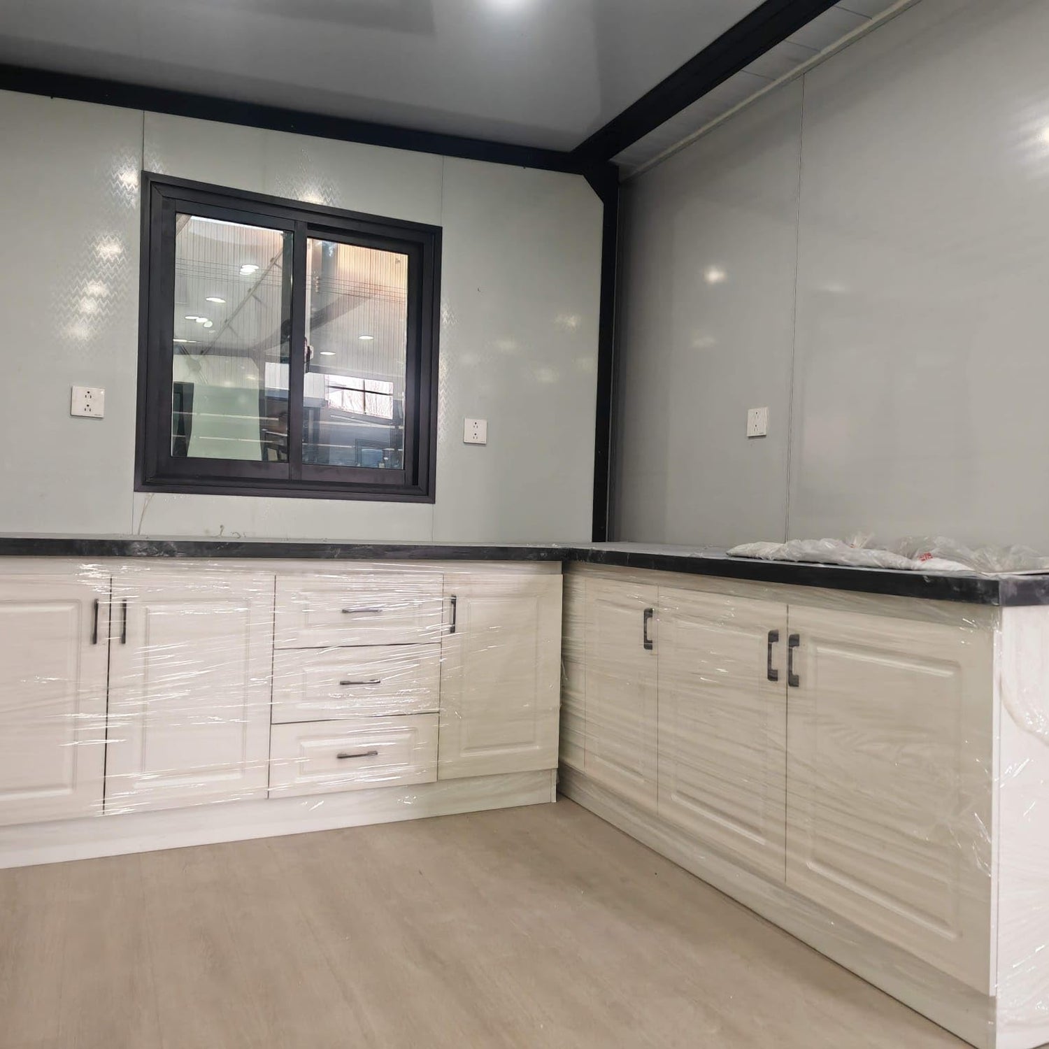 Details: 40ft foldable Luxury Villa Folding Container Living home The 40ft expandable container house consists of 3 bedrooms, 1 bathroom, 1 kitchen and 1 living room 3 bedroom layout 1) Open size: 11800mm * 6240mm * 2480mm closed size: 11800mm * 2200mm * 2480mm 2)75mm eps sandwich panel for walls and roofs 3)18mm reinforced MGO board +2.0mm pvc floor tile 4) One aluminum double-layer glass hinge door with Broken Bridge (W1900 * H 2230mm) and 11 aluminum double-layer glass sliding windows (930 * 930mm); 5) live, DB CTN, switch, socket, air conditioning socket, wire, etc; 6) with bathroom (shower, shower plate, toilet, washbasin, pipe) 7) free installation of electric water heater 8) kitchen with 2 m +2.2 m length