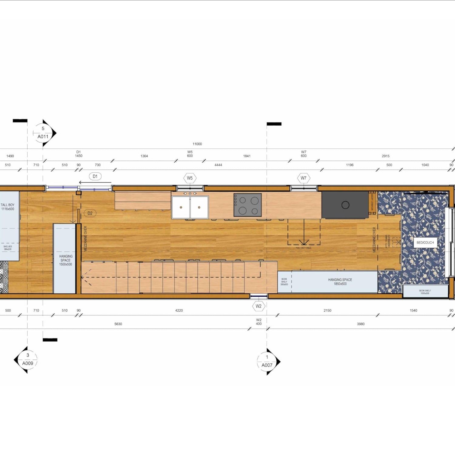 Details: Discover the ultimate in compact living with this exceptional Mobile Tiny Home on Wheels! Measuring 36’x 8’ with a spacious 288 square feet floor area, this tiny home offers a functional and stylish living solution on the go. The thoughtfully designed floor plan includes a versatile bed/couch area, a modern kitchen, ample storage space, and a well-appointed washroom complete with a shower. Enjoy the convenience of two loft areas, one featuring a comfortable bed, perfect for a restful night's sleep or additional storage. Included with your purchase are comprehensive building plans to guide your setup: floor plans, roof plan, elevations, sections, window and door schedules, trailer plan, kitchen plan, stair plan, and detailed sections. Whether you’re looking for a cozy full-time residence or a flexible vacation home, this mobile tiny home offers comfort, style, and practicality wherever you travel.