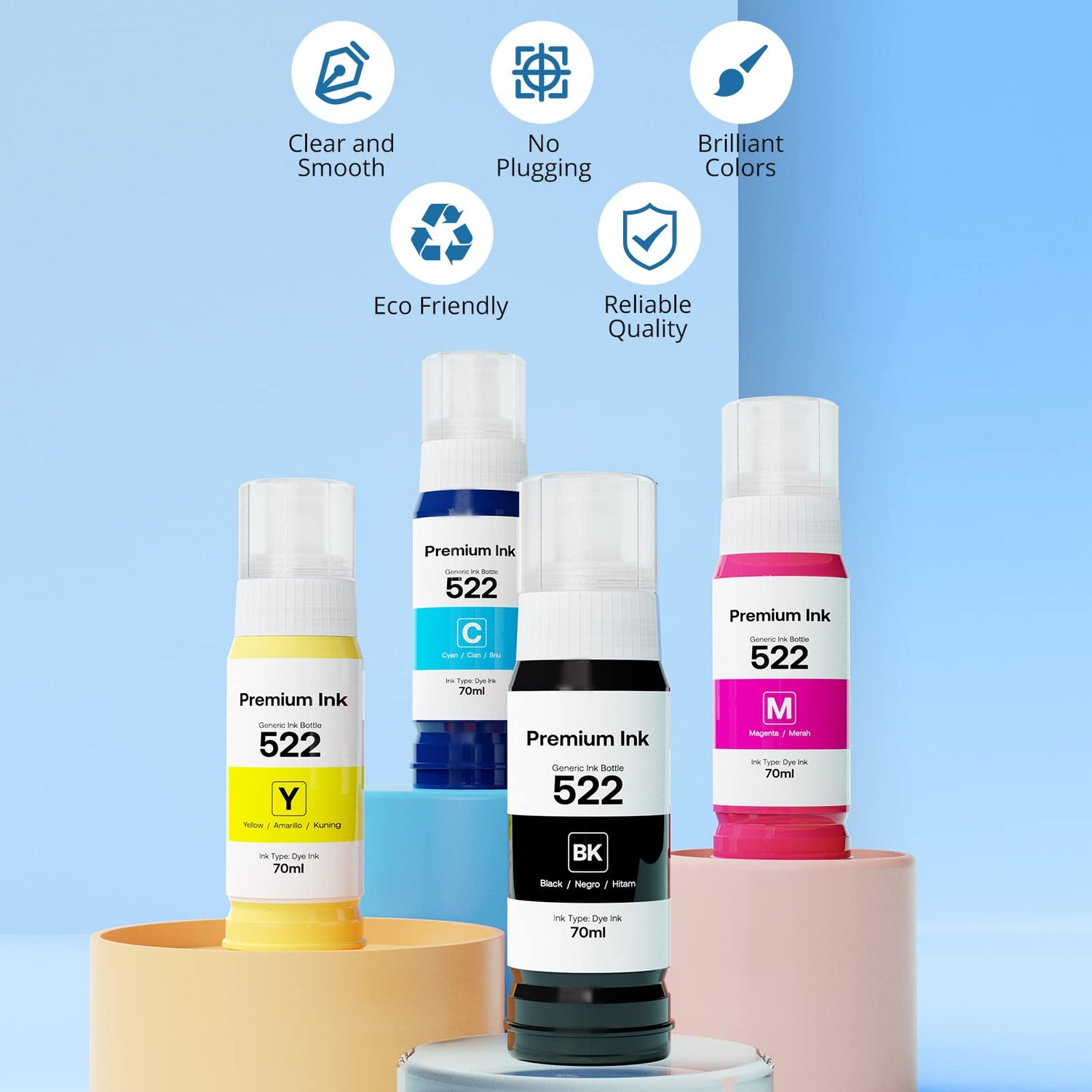 522 High Capacity (5 Bottles) Refill Ink Bottle Replacement for Epson Compatible 522 Ink Refill Bottles (Not Sublimation Ink) Use for EcoTank ET-2803 ET-2800 ET-2720 ET-4800 Printer