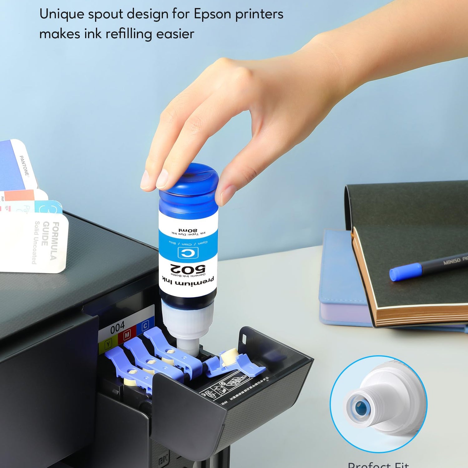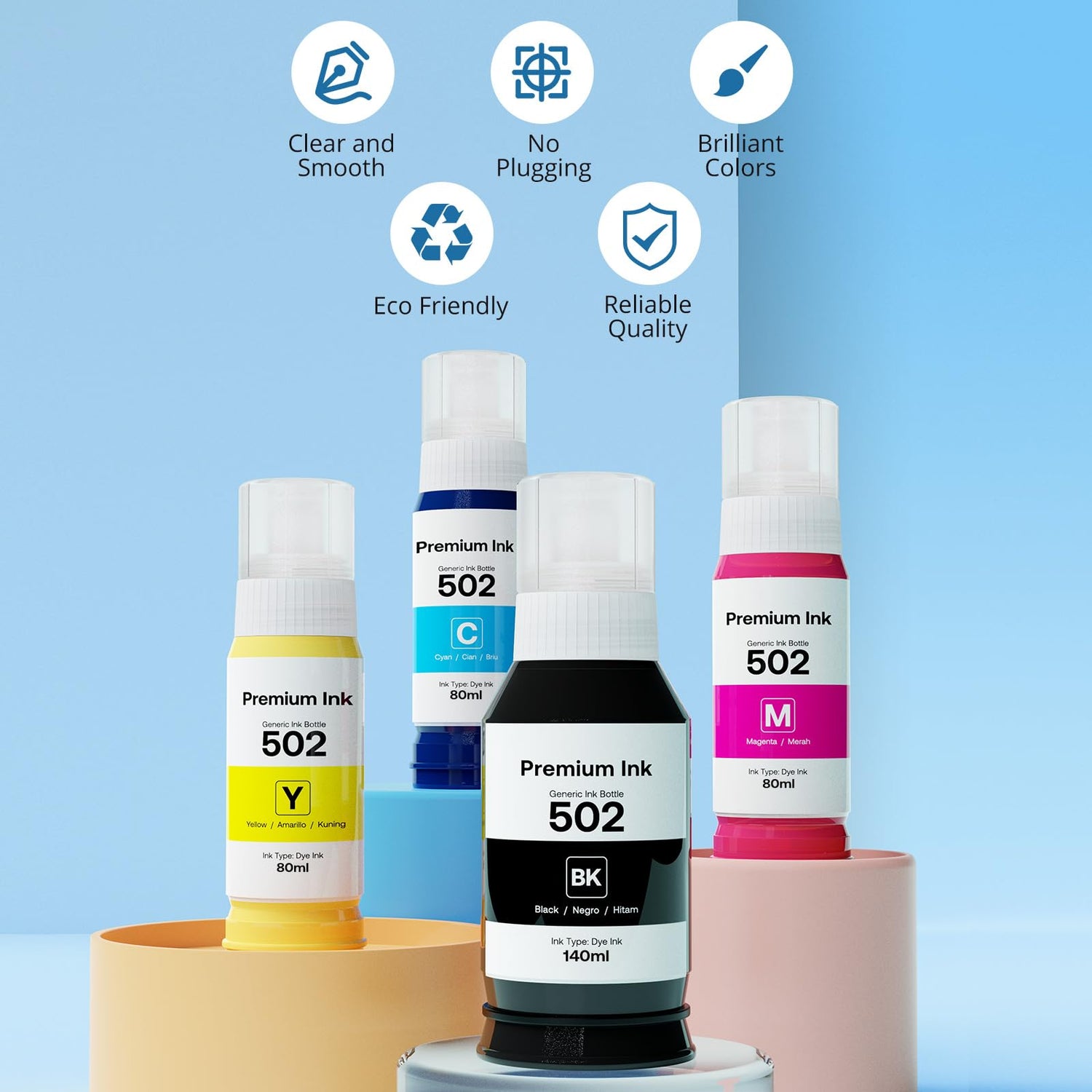 - Page Yield: Up to 7,500 pages per Compatible for epson 502 black ink, Up to 6,000 pages per Compatible for color 502 ink bottles. ( at 5% coverage on A4 paper)
