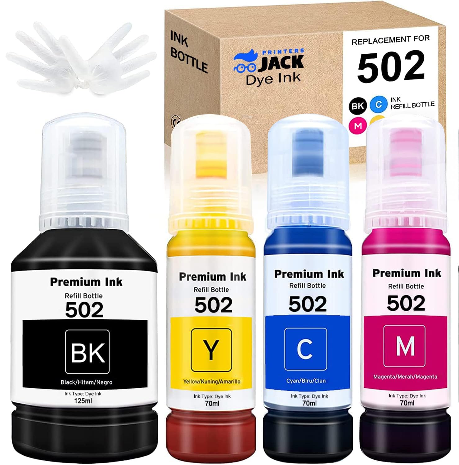 Printers Jack Compatible 502 T502 Refill Ink Bottles Replacement for EcoTank ET-2750 ET-3750 ET-4750 ET-2760 ET-3760 ET-4760 ET-2700 ET-3700 ET-3710 ET-15000 ST-2000 ST-3000 ST-4000 Printer