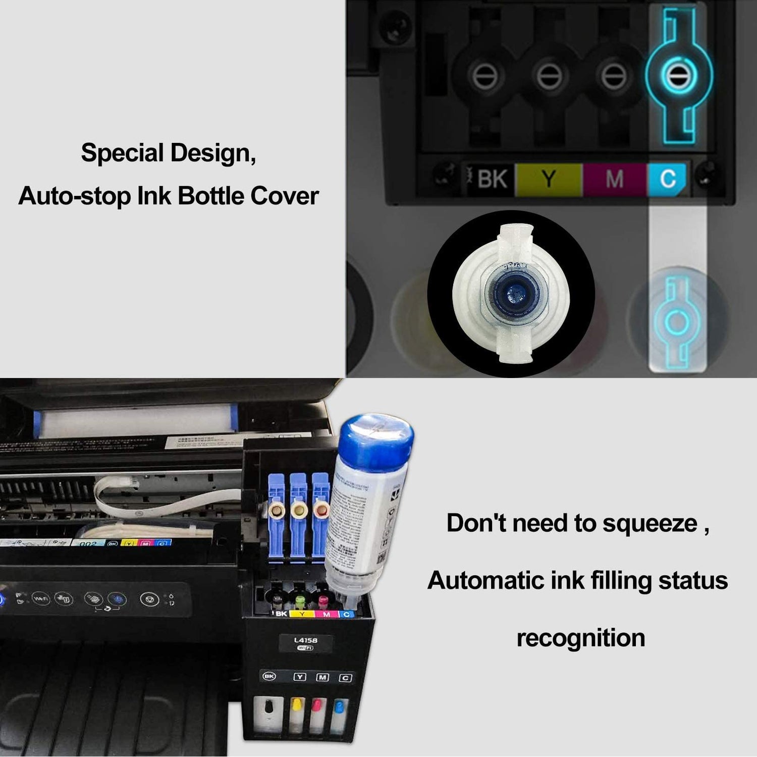 - EASY INSTALLATION. Every T502 refill ink bottle has different inject heads to prevent mixed up color injections.