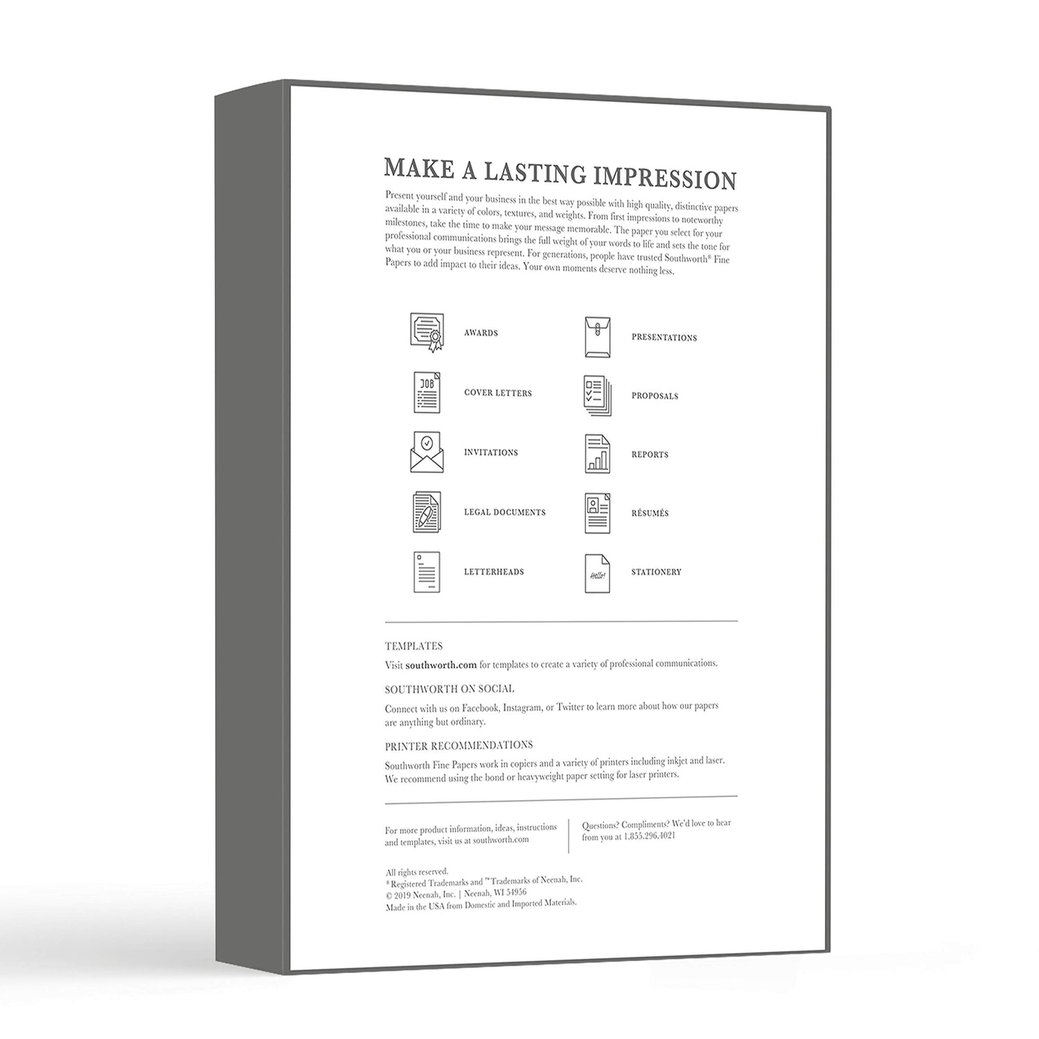 • Make lasting impressions with 100% cotton business paper. This Southworth stationery and laser paper features a crisp texture for high-quality prints.