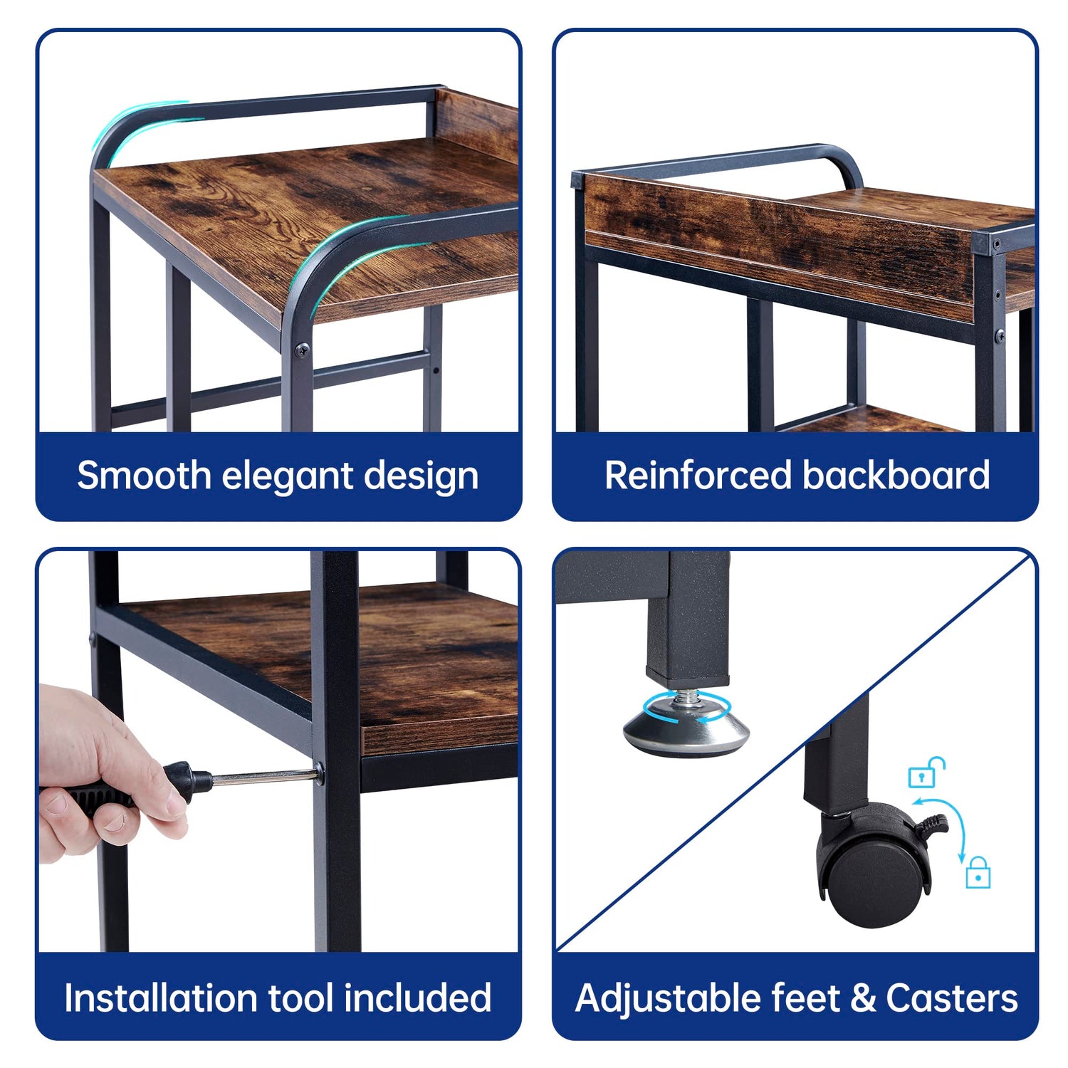 Details: Fannova 22 x 18 Inch Large Printer Stand, Mobile Printer Table with Wheels for Home Office Storage and Organization, PC Tower Stand, Host Computer Cart, Shelf for Desktop CPU Shredder - Rustic Brown
