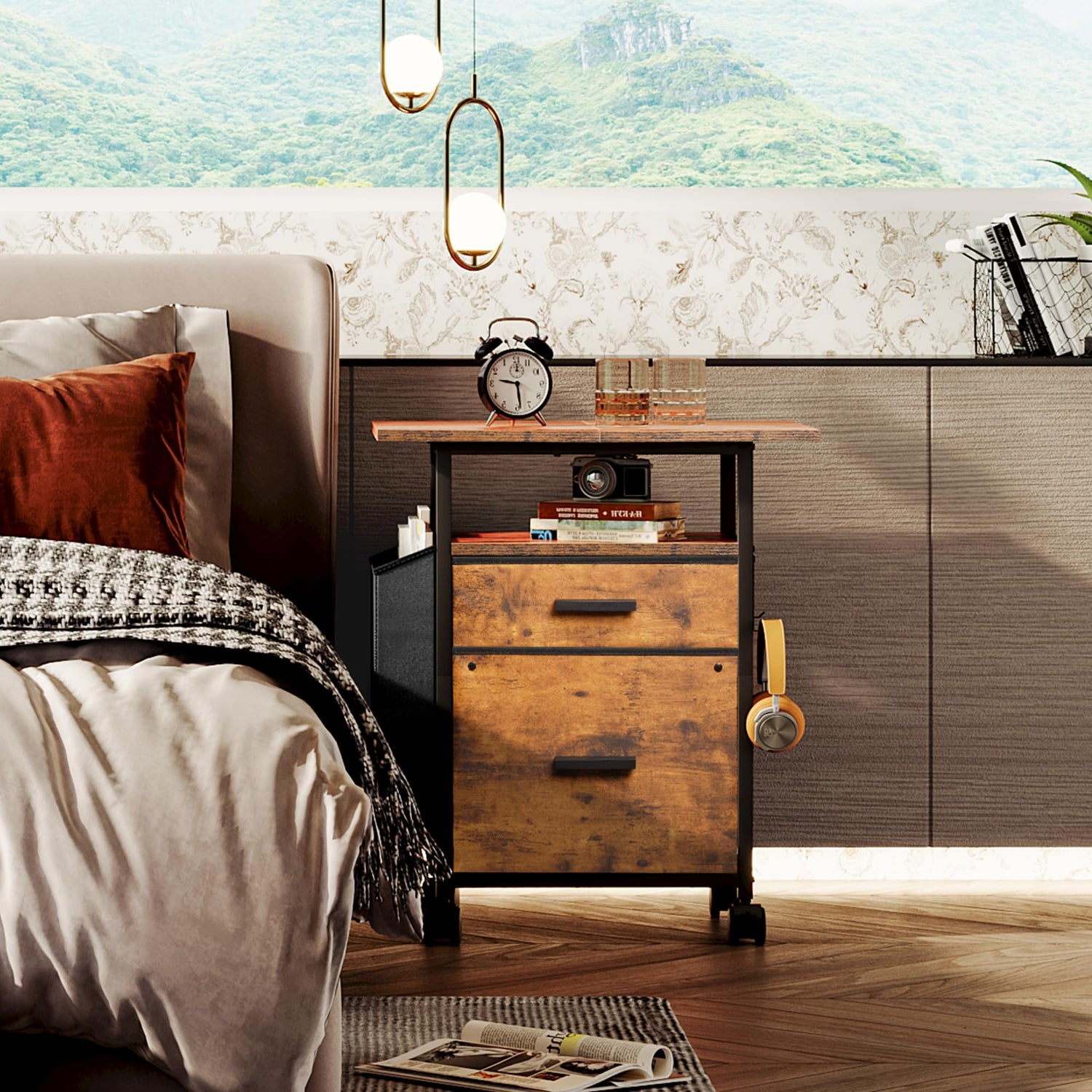 NASHZEN File Cabinet Printer Stand, Mobile Filing Cabinet with 2 Storage Drawers, for Hanging A4, Letter Size File Folders, Open Shelf with Storage Bag and Hooks Home Office, Rustic Brown