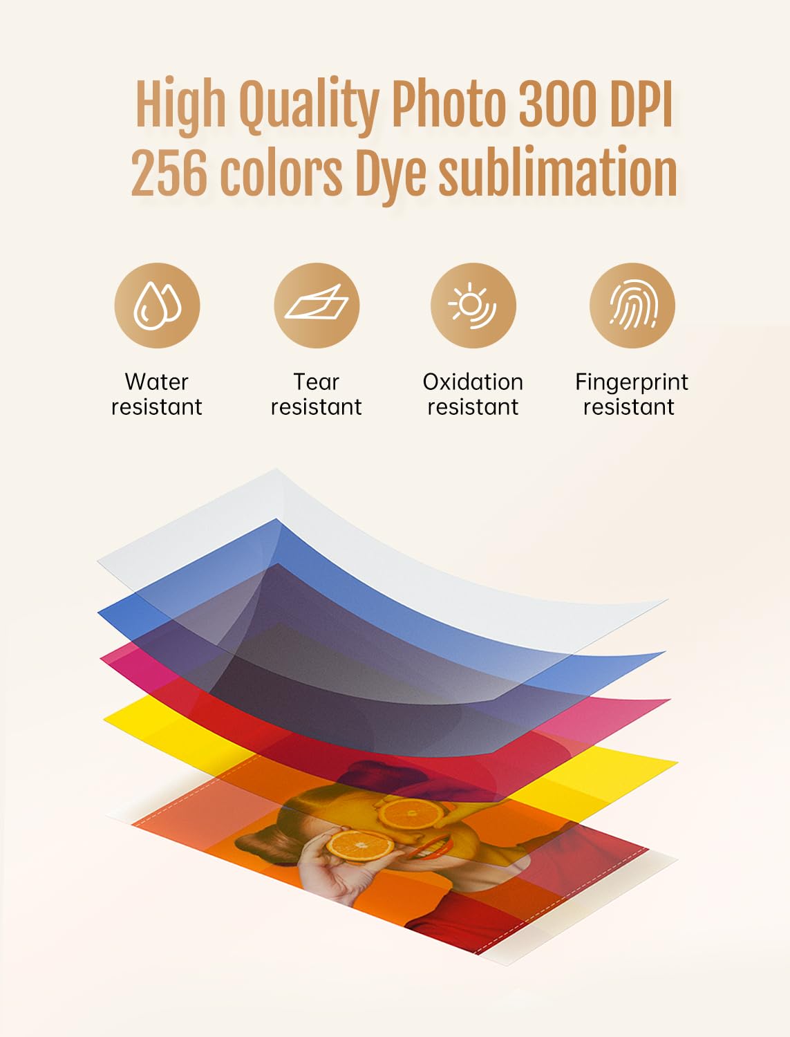 • High Quality Photos: The HPRT CP4100 sublimation printer 4"x6" uses advanced thermal dye sublimation technology with a display resolution of 300 DPI and a color gradation of 256 colors to bring your photo prints to life in brilliant color. The HPRT photo printer coats your precious photos with a protective film that will keep them intact for a long time, preventing water damage, scratches and fading. It's the perfect Father's Day gift for you. Together we will make the most precious memories that will never fade away