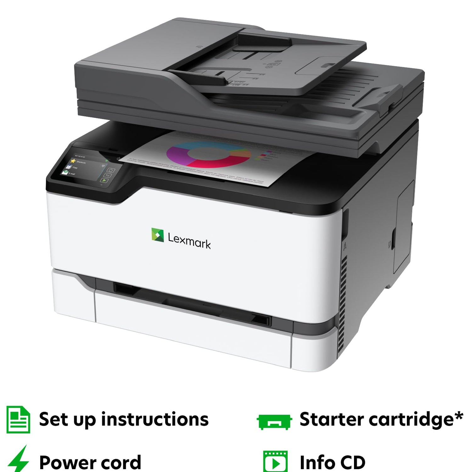 Details: The Lexmark CX331adwe enhances your productivity with color output up to 26 pages per minute*, plus automatic scanning, copying and faxing, all in a compact, touch-screen-equipped package.