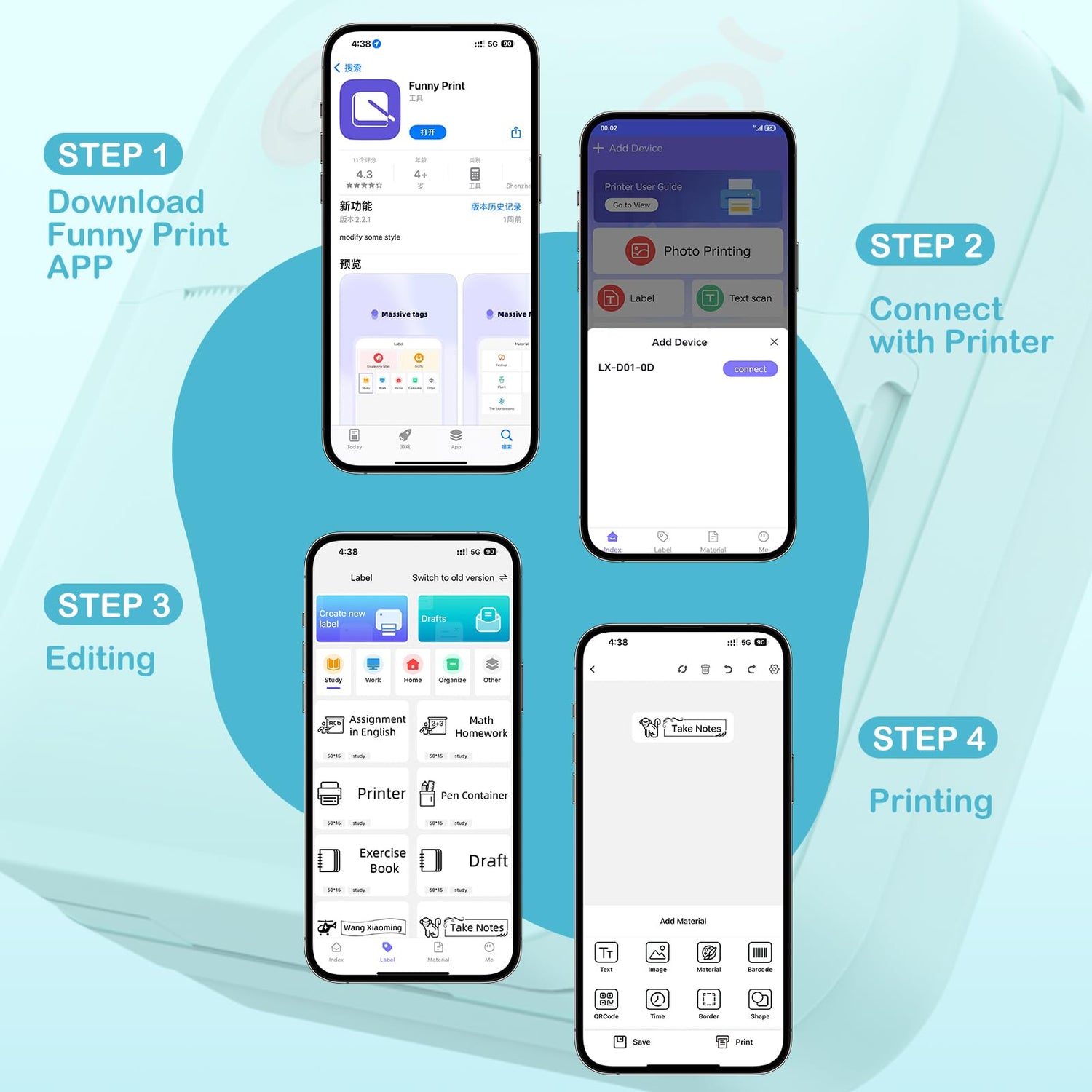 - Easy to use: LOPEVI label printer is compatible with IOS and android phones via bluetooth connection. step 1: long press for 3 seconds to turn on the label printer. 2: double-click the button outside the printer to print a QR code, scan the QR code to download the "FUNNYPRINT" APP. Step 3: turn on bluetooth. Step 4: Install the paper roll. Step 5: connect the bluetooth in the APP. Step 6: select the template you need and start printing.