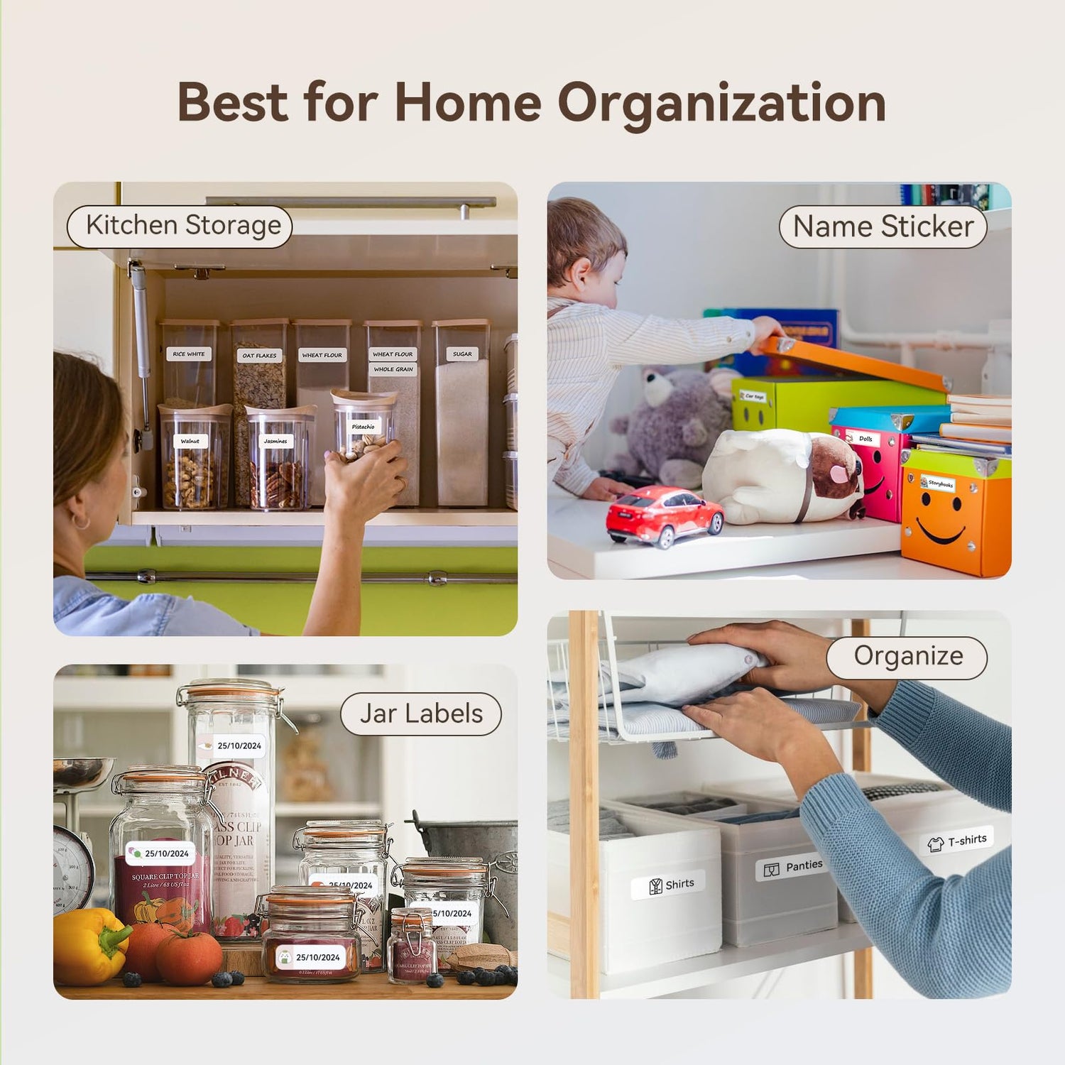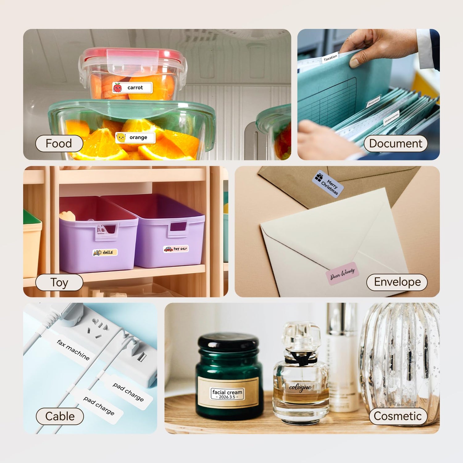 • Wide Application: The label maker printing width up to 15mm with a variety of styles of label tapes, such as 12X40mm, 14x30mm, 15x30mm and more, widely used in home storage and organization, school and office file classification, and small business, such as jar stickers, food date, cosmetics, personal items, name tags, cable identification, price tags, jewelry labels, etc. It’s also the perfect back-to-school supplies and home helper