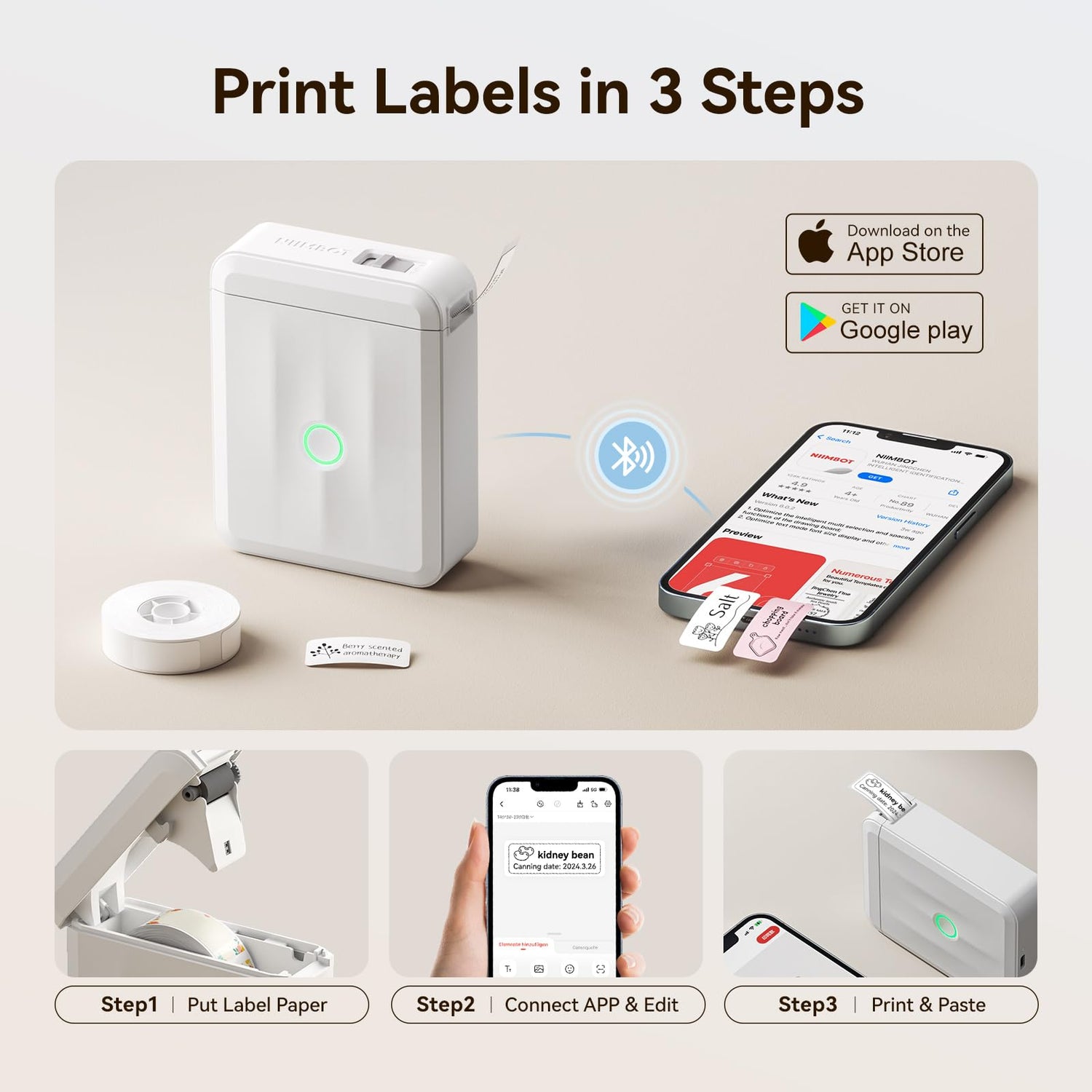 • Easy to Use: Mini Bluetooth wireless thermal label printer, compatible with IOS & Android Phones, connects your mobile phone easily, you can download the "NIIMBOT" APP from Google Play or App Store. The app provides multiple creative functions and templates, easy to create various design label stickers from the App to make the label you need