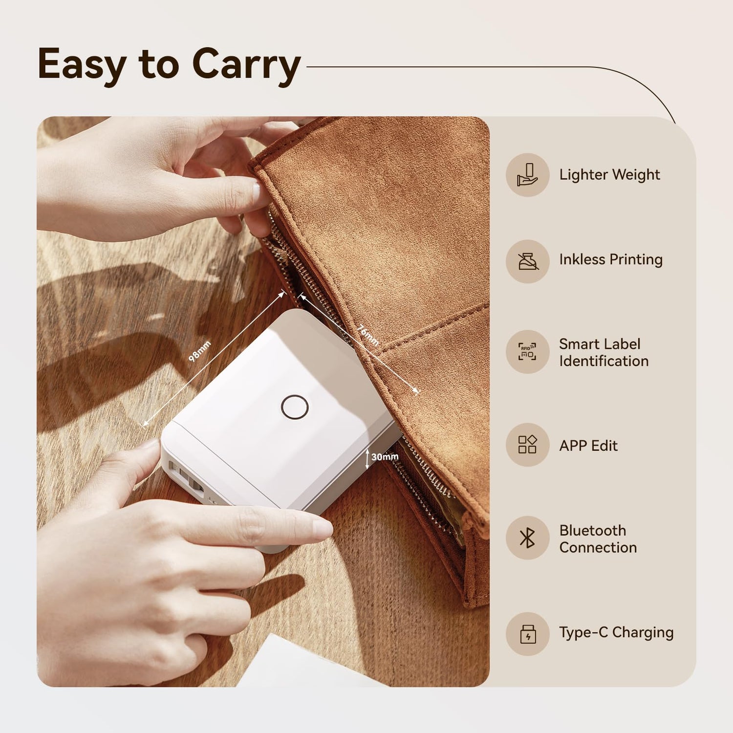 • Smart Label Rewinds: Upgraded the automatic paper rewind positioning function, and the position of the first label is automatically calibrated when the label maker is turned on. Effectively avoids printing offset problems and does not waste the first paper and automatic label recognition which helps you save money, time, and effort