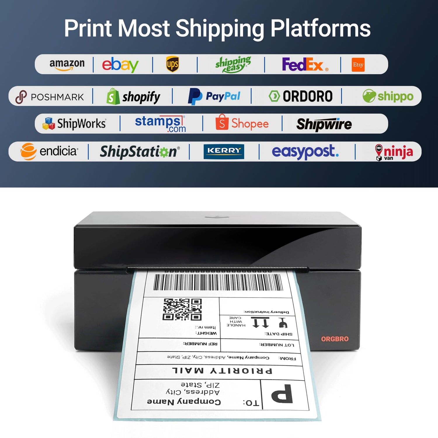 - Easy to Use: This ORGBRO shipping label printer is compatible with Windows (Windows 7 SP, Windows10 X86/X64, Windows 11 X64), Mac OS (Mac OS 10.15, Mac OS 11.2.1, Mac OS 12.6.2, Mac OS 14.1), Chrome OS and Linux systems; Simple setup - connect via USB to your PC or laptop and download the driver (Note: USB connection ONLY); Print shipping labels, warehouse labels, Amazon FBA labels, barcodes, and more