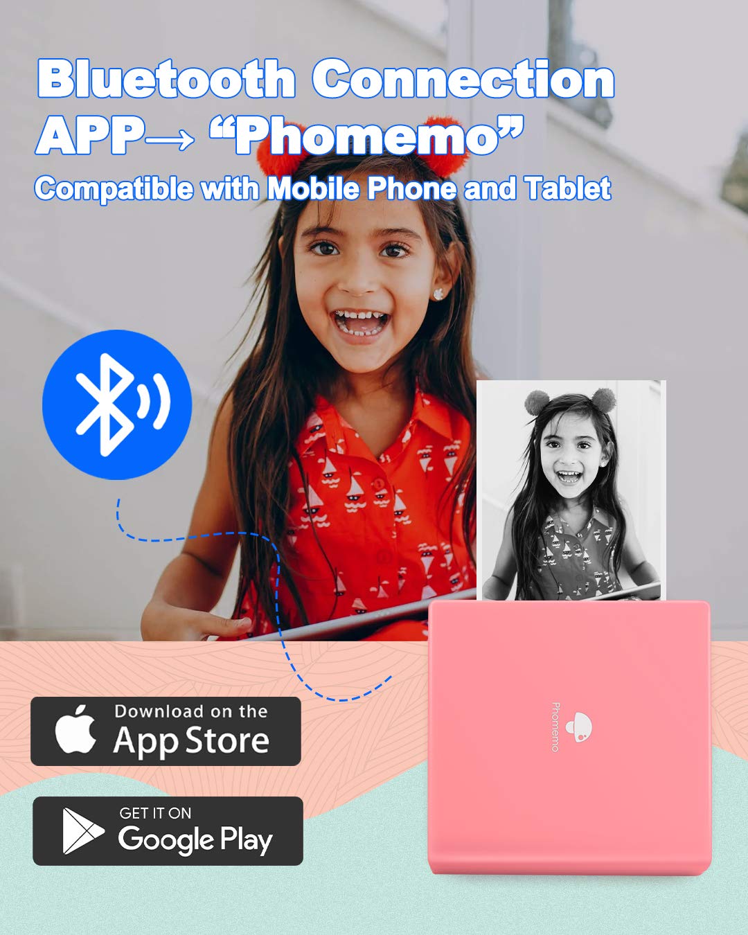 - √ Bluetooth Thermal Printer -Phomemo M02 mini thermal printer connects to the "Phomemo" app via Bluetooth. With its inkless printing capability, it offers more convenience