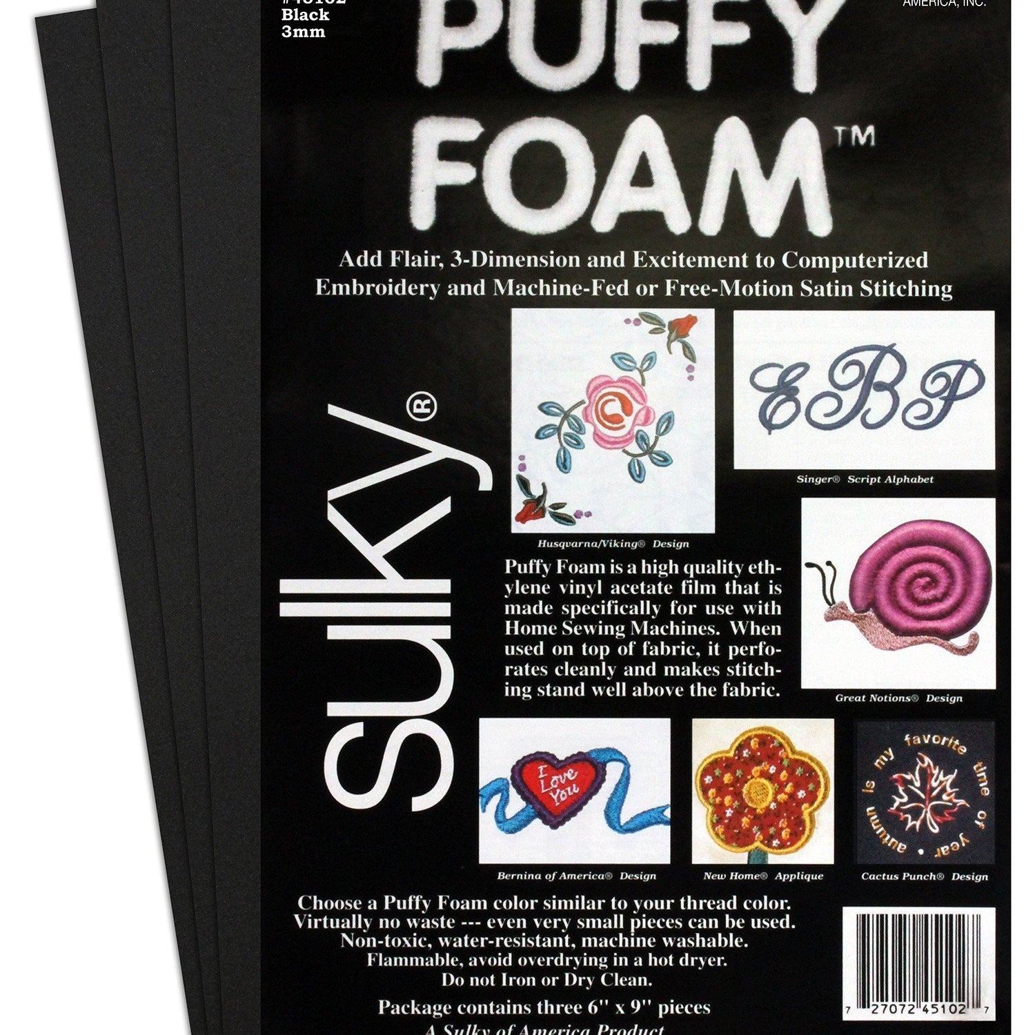Sulky Of America 3mm Puffy Foam, 6" by 9", Black