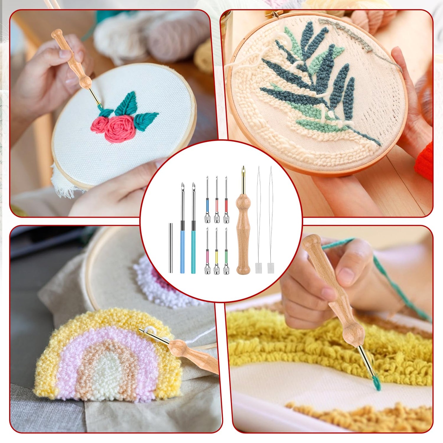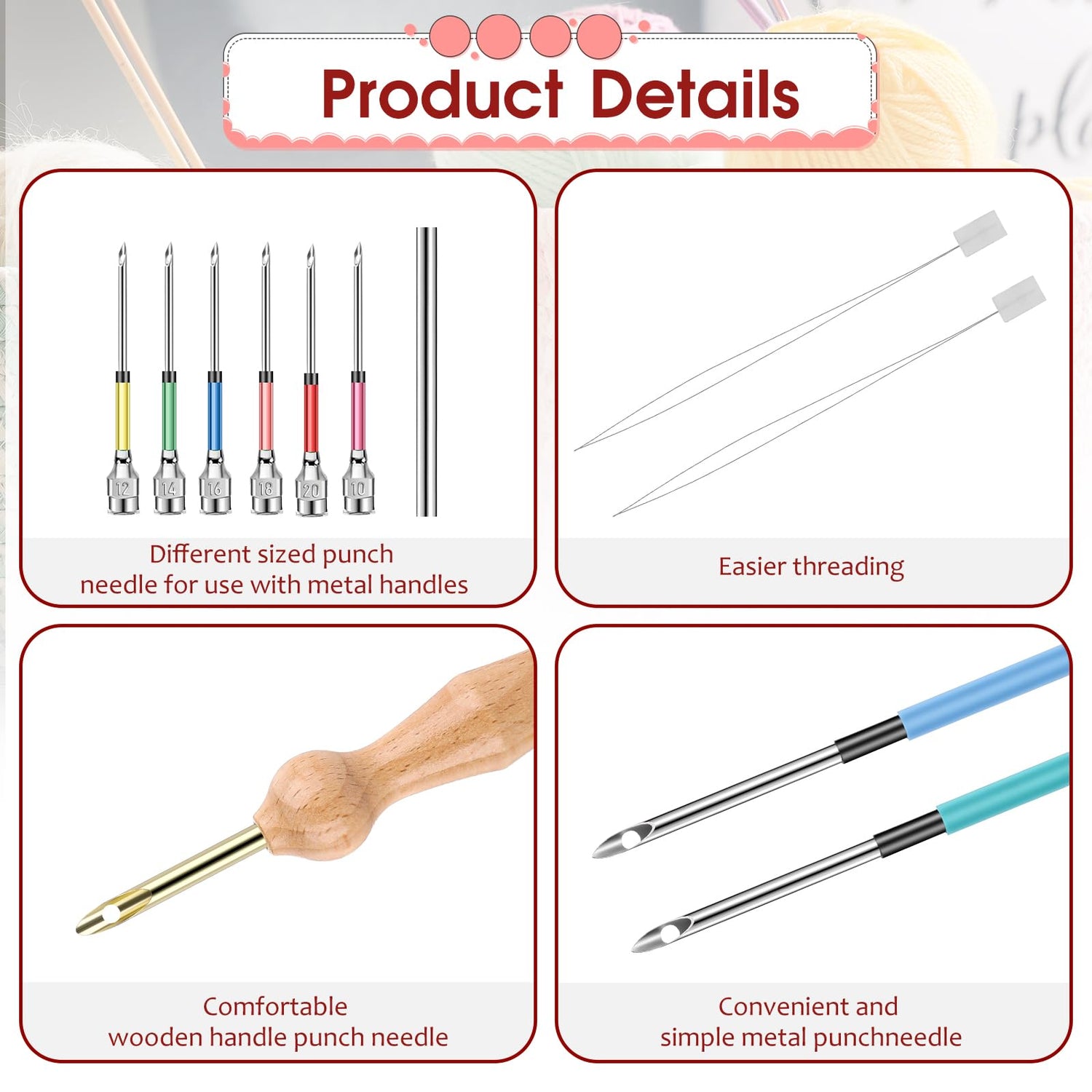 • Embroidery Punch Needle Kit: You will receive 1 wooden handle punch, 2 metal handle punch needles of different sizes, 6 punch needles of different sizes, 1 metal handle, 2 needle threaders, sufficient quantity and rich styles to meet your DIY sewing needs