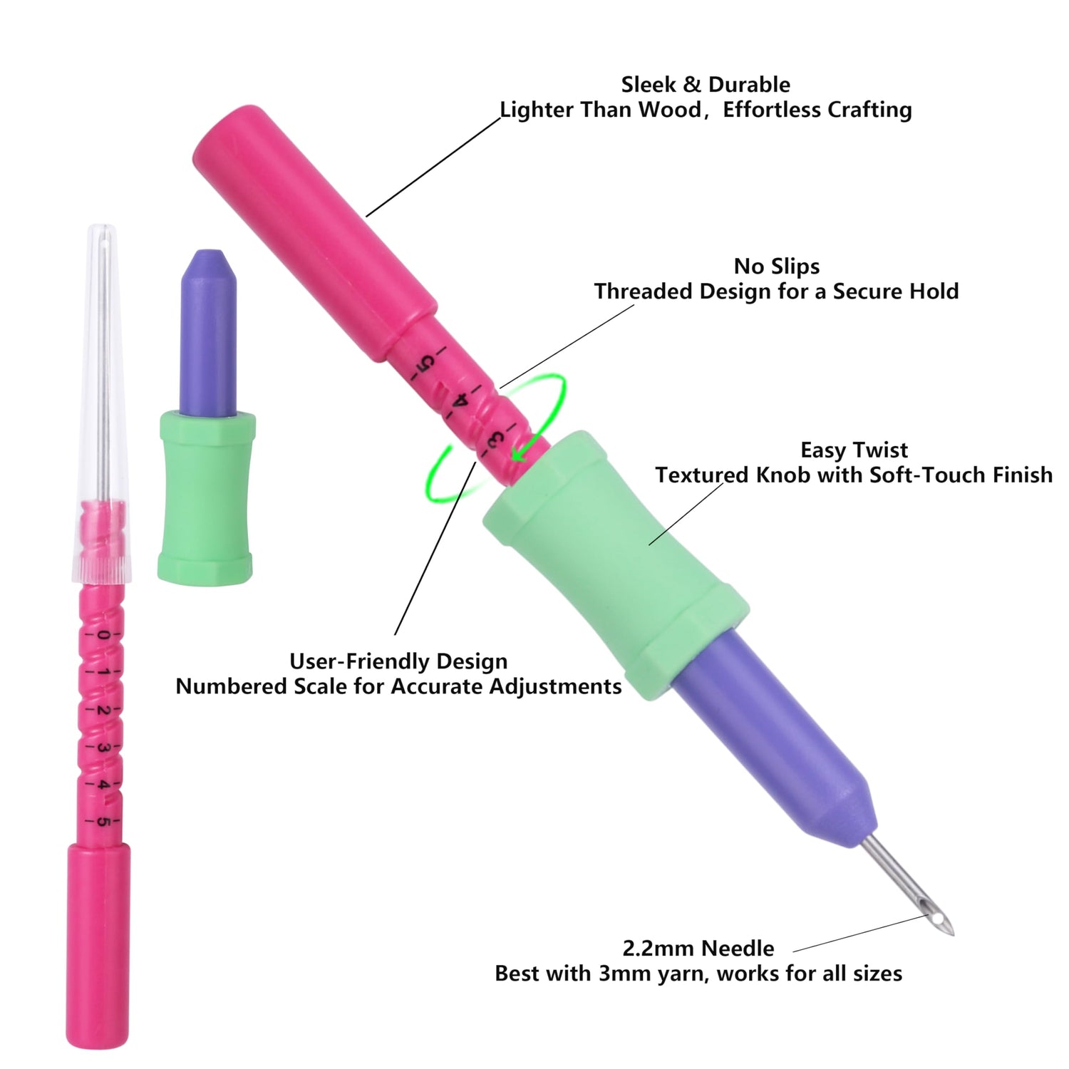 • 【2.2mm Punch Needle】The 2.2mm needle glides smoothly through fabric, making it ideal for 3mm yarn. Enjoy seamless punching and professional results every time!