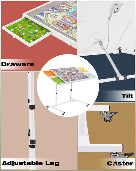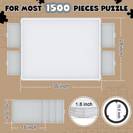 • Lafati 1500 Piece 2-in-1 Tilting & Rotating Jigsaw Puzzle Board with Drawers,35"x27" Adjustable 5 Angle Puzzle Board with Cover & 4 Puzzle Sorting Trays, Gifts for Puzzle Lovers Lafati