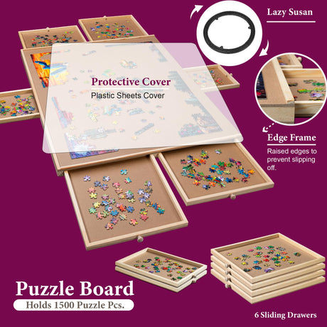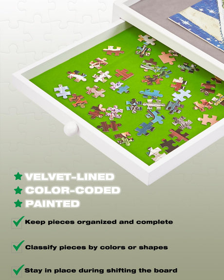 • Join&Joy 1500 Piece Puzzle Board Pro, with 6 Drawers & Cover, 34" x 25", Sort-Wise Colorful Felt Drawers, Wooden Jigsaw Puzzle Board, Birthday Gifts for Mom JOIN&JOY