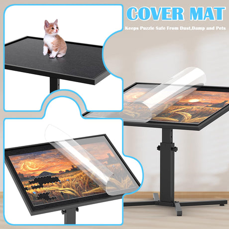 • Rotating Puzzle Board 1500 Pieces - Adjustable Puzzle Table with Drawers & Dust Cover, 27x35 Inch Portable Wooden Jigsaw Board, Ergonomic Tilt for Adults, Gift for Mom Kids Wdmiya