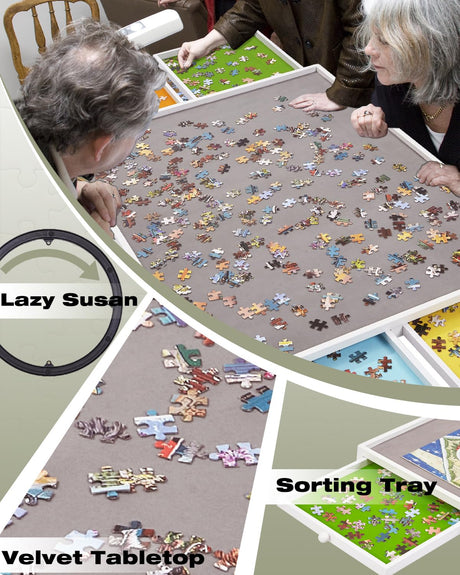 • vvituaC 1500 Pcs Tilting & Rotating Puzzle Board for Adults, Wooden Puzzle Table with 6 Drawers and Cover,Portable Board with Lazy Susan Rotatable 360-Degree,34.25" x 25.2" for 1500 Pieces vvituaC