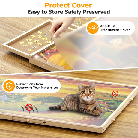 • Tilting & Rotating Puzzle Board 1500 Pieces, Vertical & Horizontal Wooden Jigsaw Puzzle Table with Drawers & Protective Cover, 34"×25" Puzzle Board with Lazy Susan for Adults & Kids, Gift for Mum YGJT