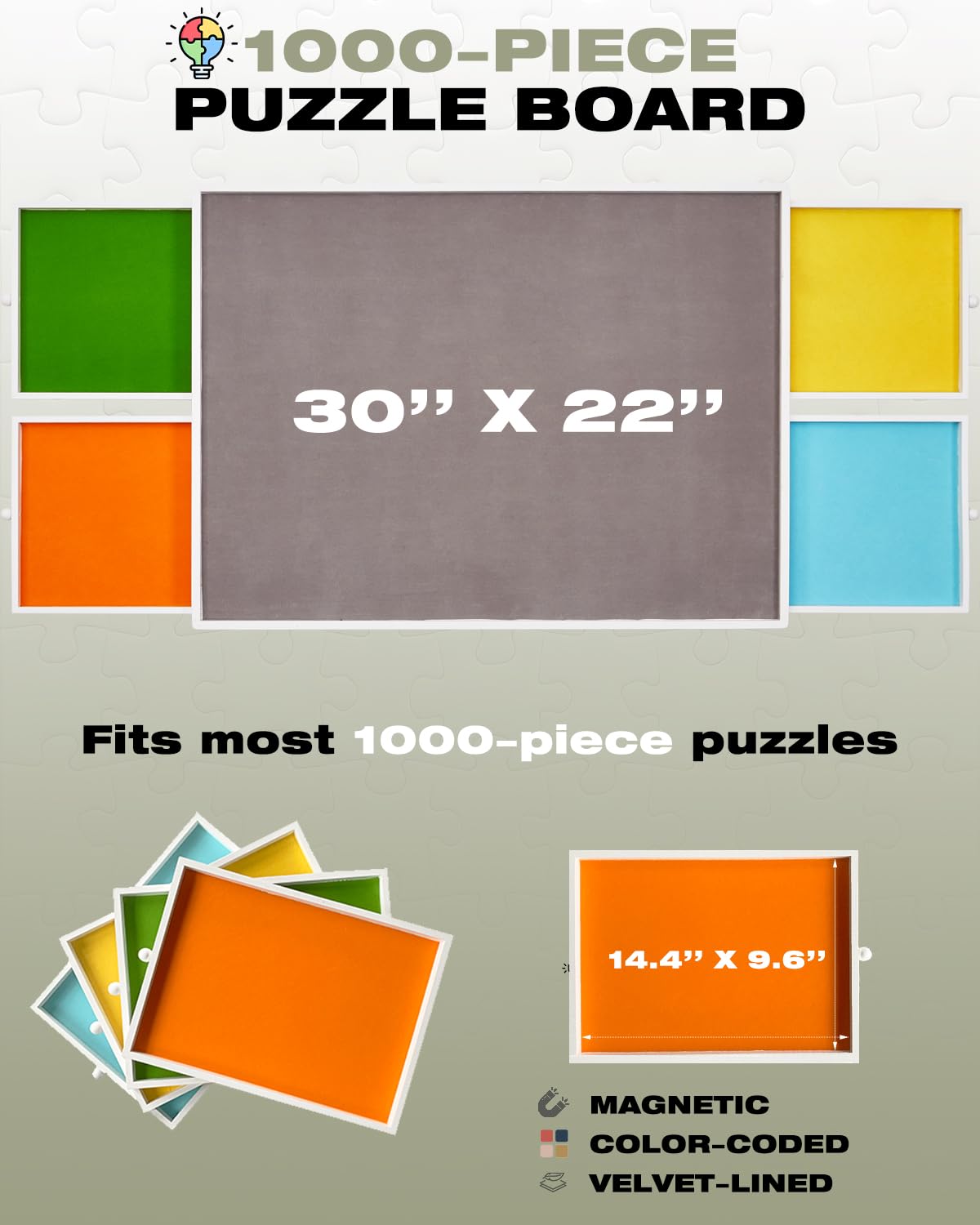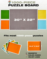 - Universal Size: The puzzle board offers a 30" x 22" workspace, fitting most 1000-piece puzzles. While puzzle sizes may vary, ensure your finished puzzle fits within these dimensions for optimal use. Ideal gift for puzzlers