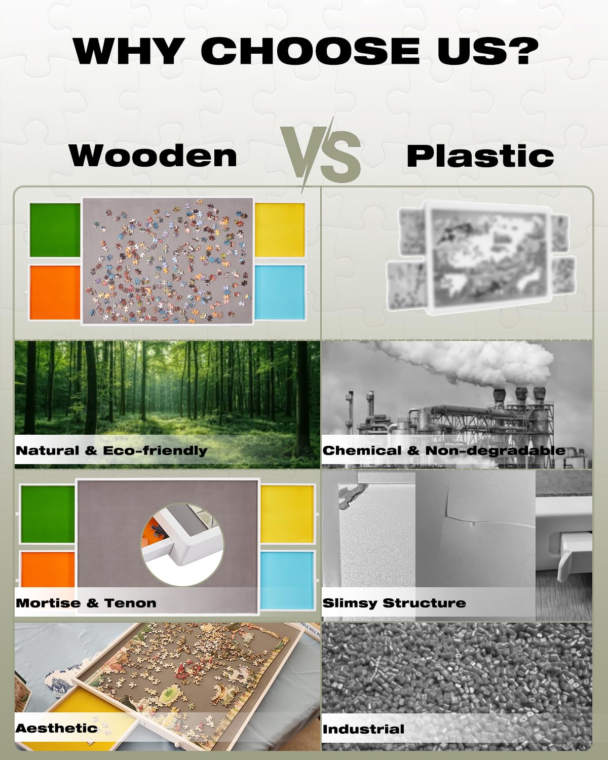 - Velvet Tabletop: Crafted from premium solid wood with a soft, velvet surface, this puzzle board offers a smooth, stable workspace. The customized velvet keeps puzzle pieces from sliding, allowing you to assemble your puzzles freely and with ease