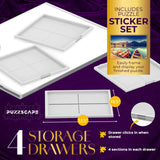 - OPTIMAL LARGE PUZZLE TABLE - Our puzzle table holds up to 1500 piece puzzles, creating an easy and efficient way to create your beautiful puzzles. Our 4 sliding drawers gives you puzzle storage for your extra puzzle pieces without worry of misplacing any components, plus it clicks in when stored.