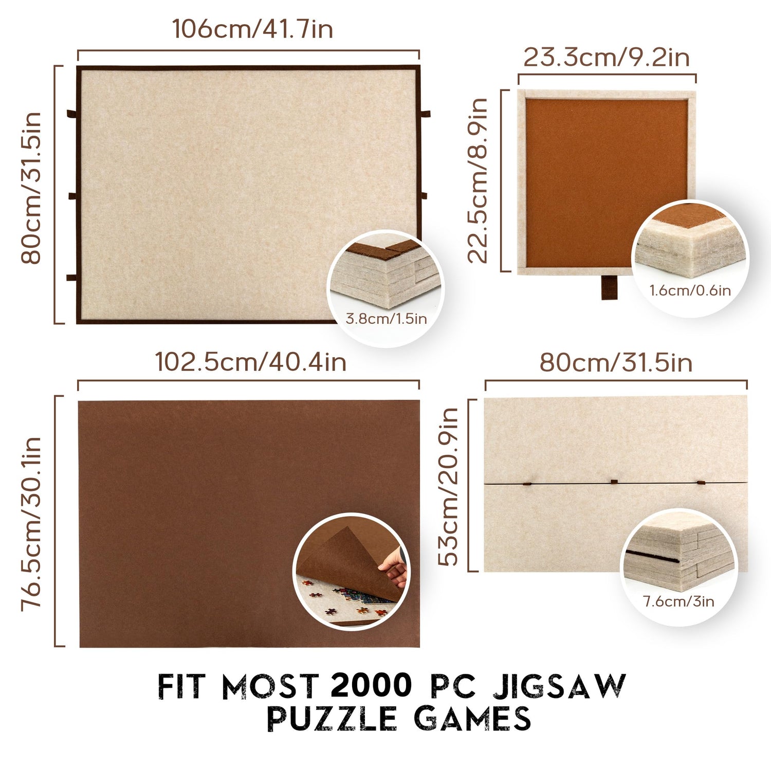 - Fold it Up to Store - Useful area measures 40.6 × 30.3 in (103 × 77 cm), which makes it ideal for jigsaw puzzle games of up to 2, 000 pcs. Can be folded up for easy storage while not in use.