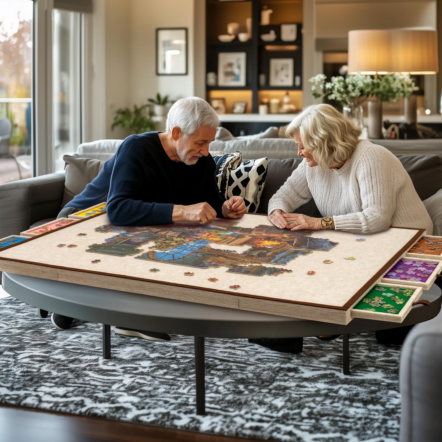 - Easy to Transport - Allows you to start your puzzle fun anywhere you want, or makes it easy to transfer the unfinished game to a safe place for preservation. Just cover the surface with the enclosed sheet protector, close the drawers and move the puzzle board under the couch or bed, your unfinished game will be preserved safely in no time.