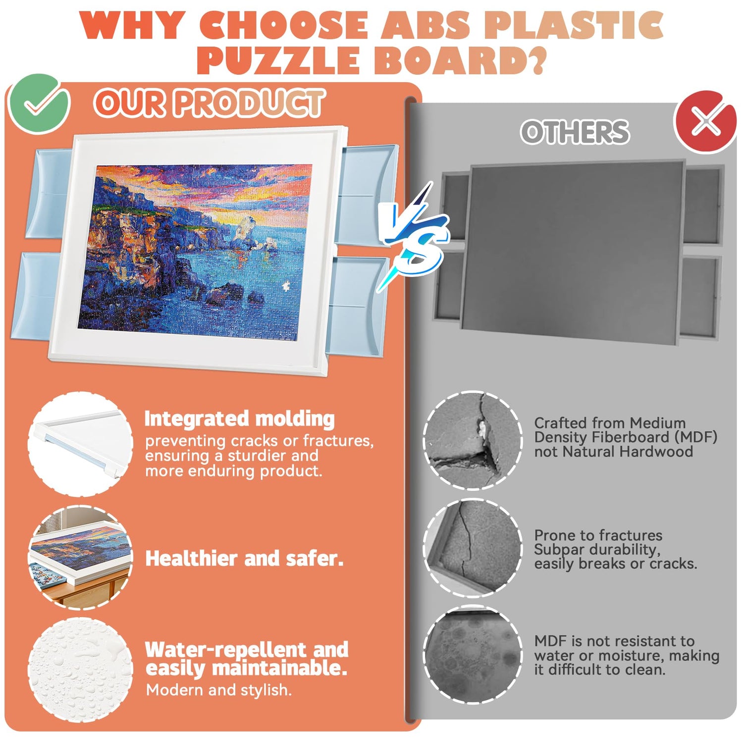 - Durable And Featherlight Abs Plastic Material:Weighing just 9.8 lbs, this puzzle board is made from premium ABS plastic, making it 30% lighter than its wooden counterparts while remaining durable and sturdy