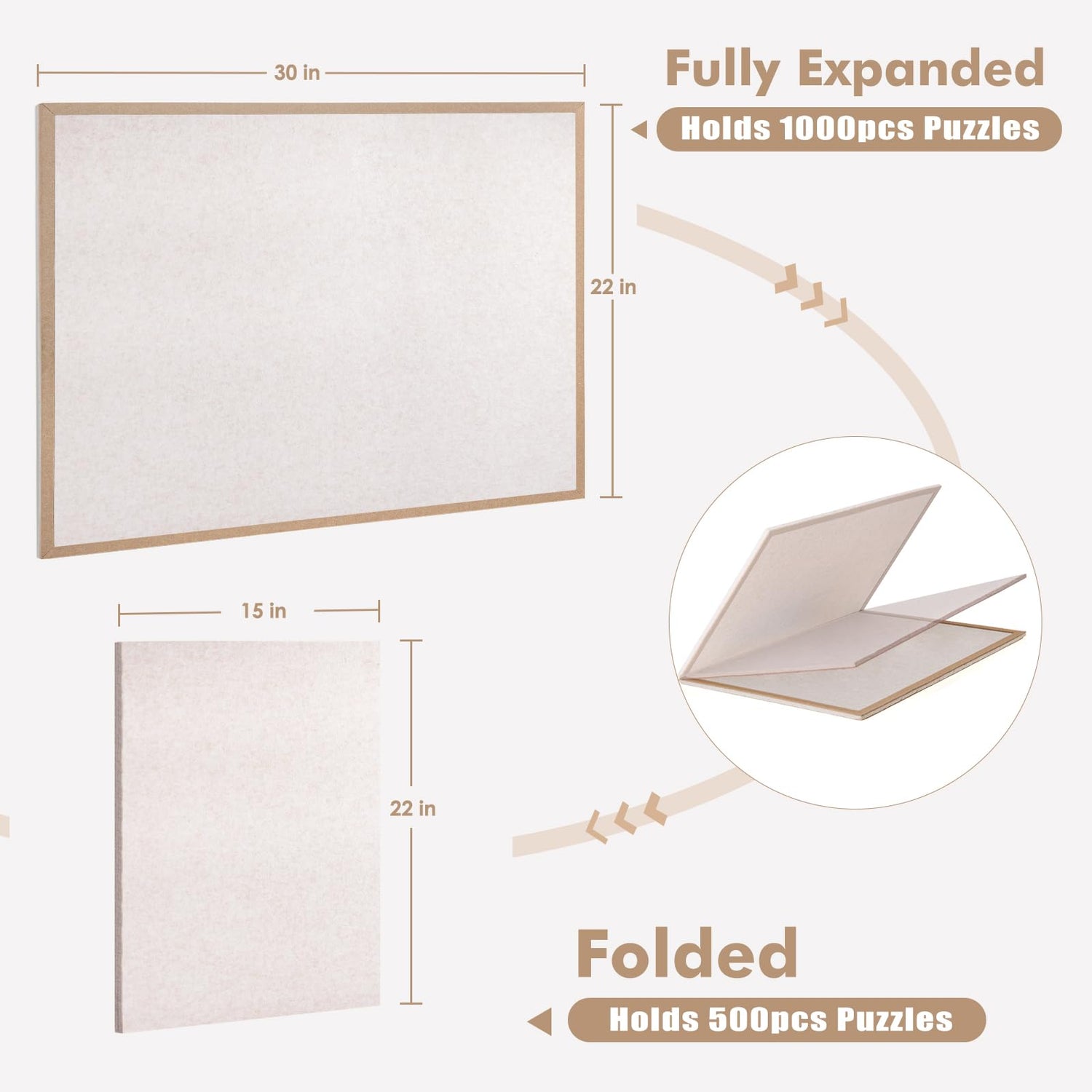 - Protective & Compact Design: Keep your puzzles safe from pets with our 31.5x24-inch felt cover. When not in use, it folds to a compact 15.7x24 inches, fitting easily under sofas or in cabinets. Enjoy both protection and space-saving convenience.