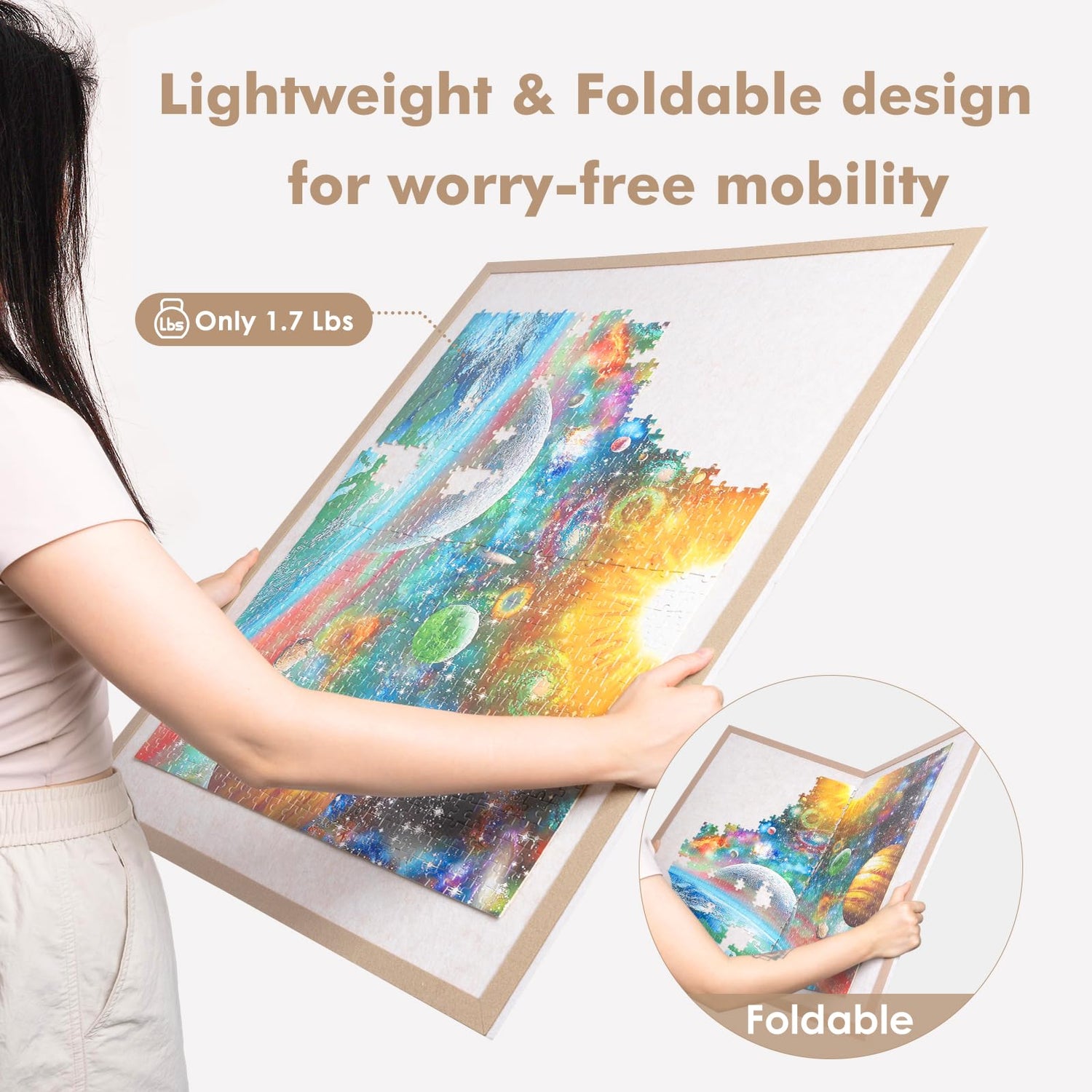 - Lightweight and Portable: Experience ultimate portability with our 2.6lb foldable jigsaw puzzle board. Lighter than traditional wooden or plastic boards, it lets you take your puzzle passion on the go and solve wherever inspiration strikes.