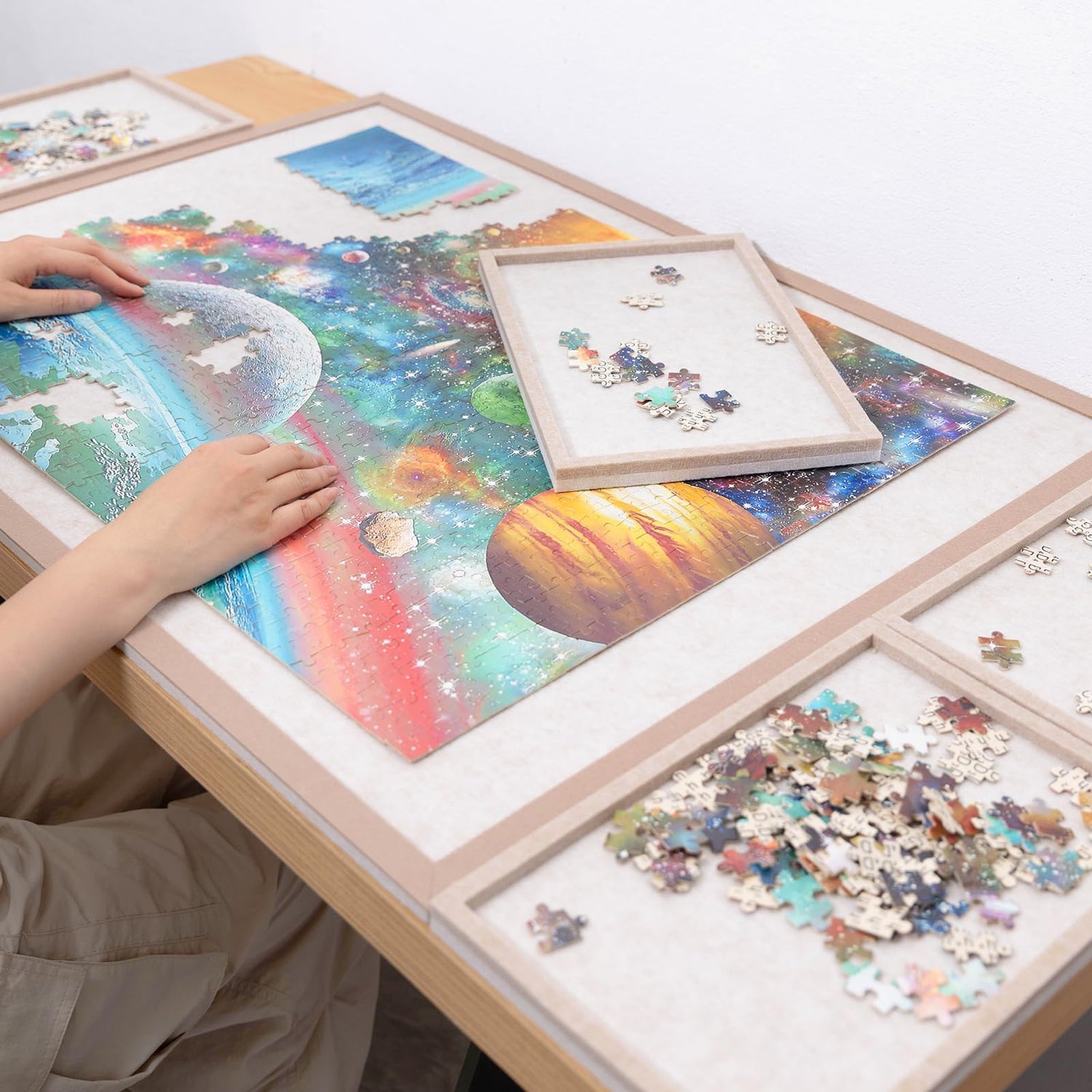 - Streamlined Puzzle Solving: Conquer puzzles with ease! This 31.5x24-inch felt puzzle board is ideal for 1000-piece puzzles. With 4 sorting trays, it keeps pieces organized for smoother, more efficient solving. Enjoy a hassle-free puzzle experience!