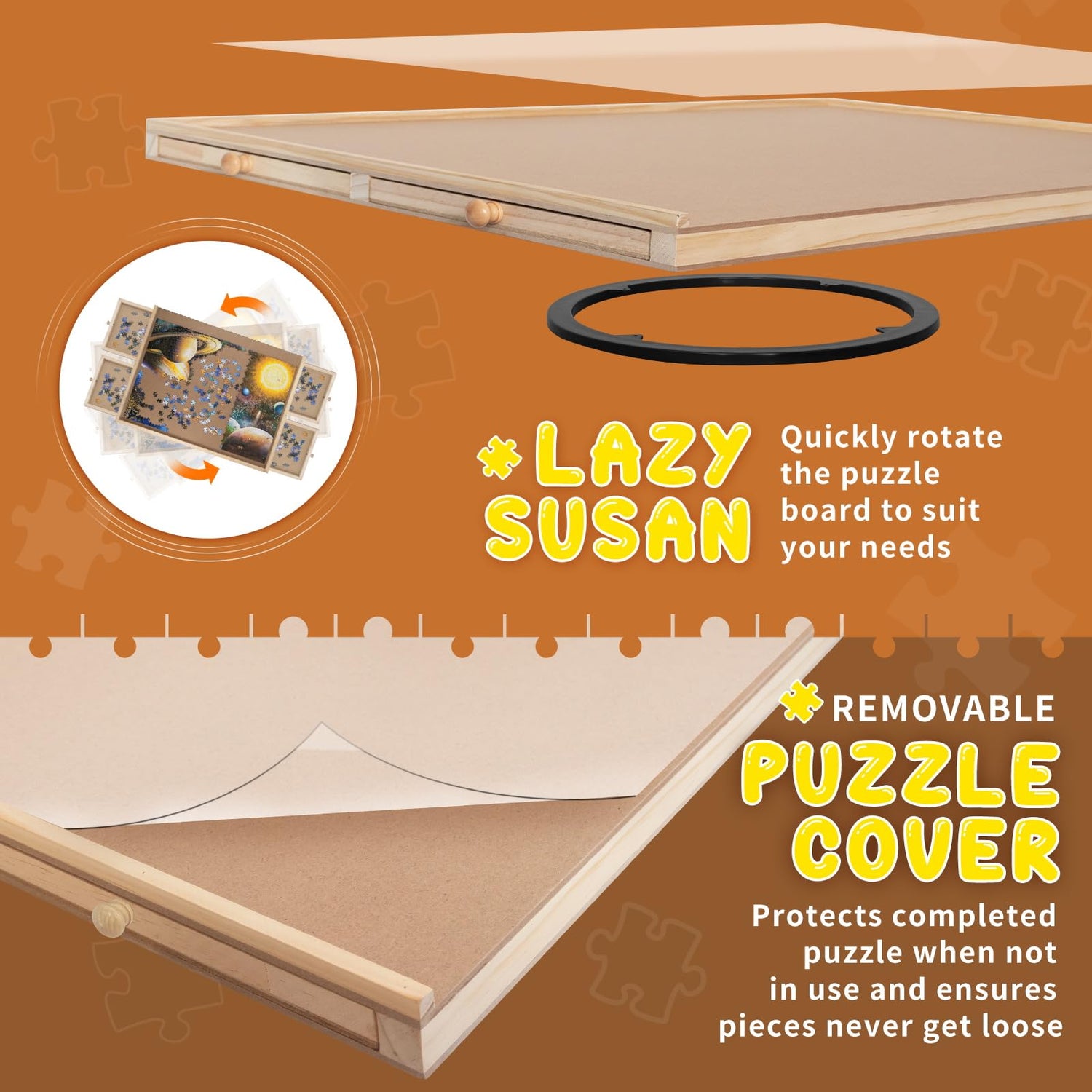 Nattork 1500 Piece Wooden Jigsaw Puzzle Board - 6 Drawers, Rotating Puzzle Table, Jigsaw Puzzle Table with Cover - Portable Puzzle Tables for Adults and Kids