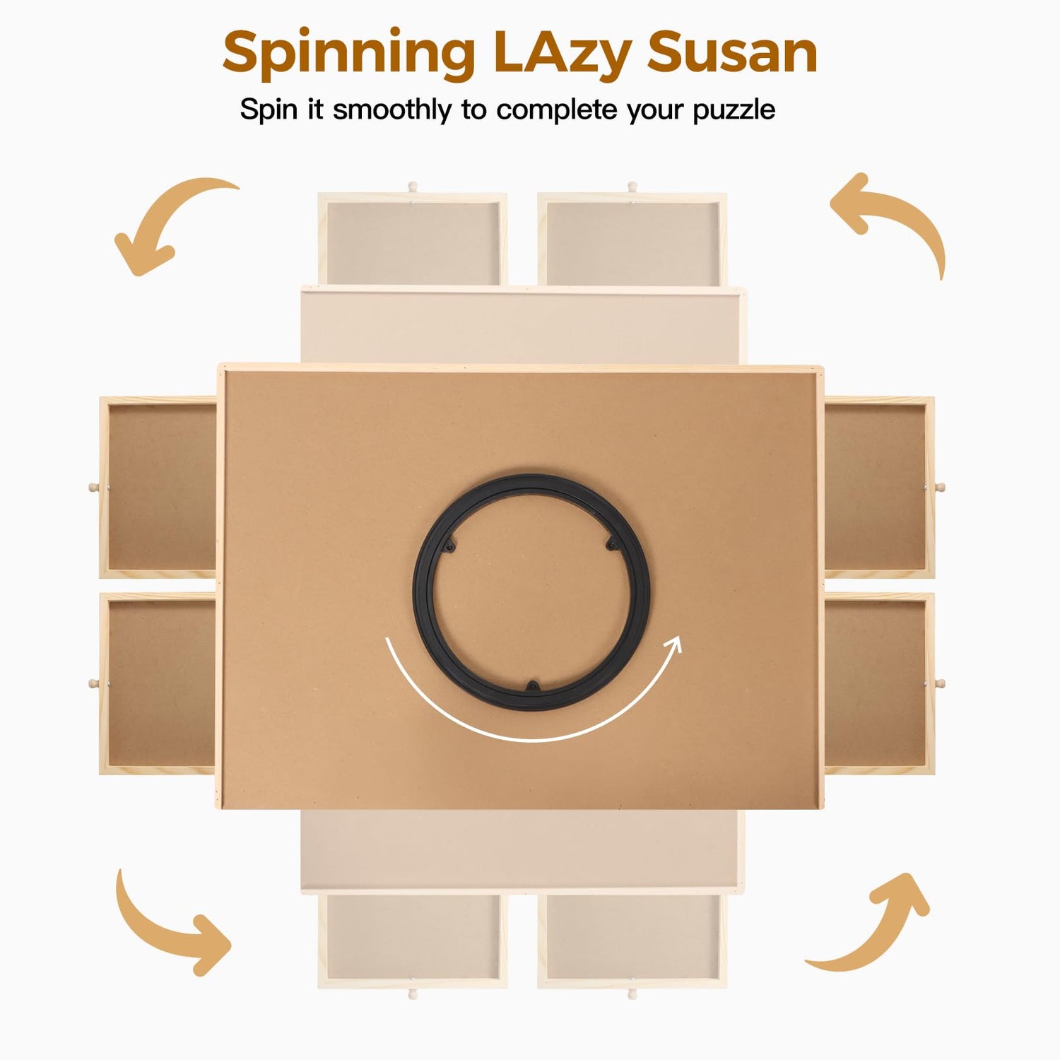 Panana Puzzle Locker 1000 Piece Puzzle Board with Drawers and Cover,30"x22" Portable Wooden Jigsaw Puzzle Table with 4 Drawers,Lazy Susan Spinning Puzzle Boards Birthday Gift (1000 pcs - Rotating)